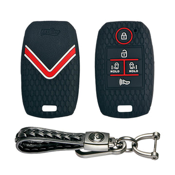 Keyzone striped key cover fit for : Seltos, Sonet, Carnival, Carens 3/4/5 button smart key (KZS-19)