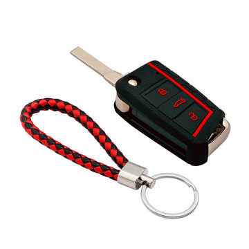Keyzone striped key cover fit for : Karoq, Octavia, Superb, Kodiaq, Slavia flip key (KZS-17)
