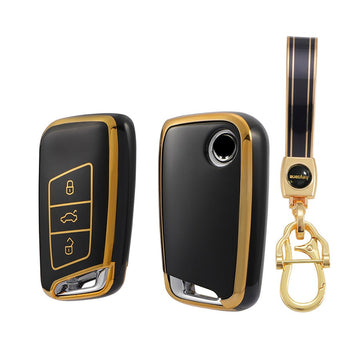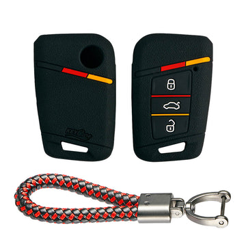 Keyzone TPU Key Cover and Keychain For Skoda : Superb, Kodiaq, Octavia 2014 Onwards Smart Key (TP40)