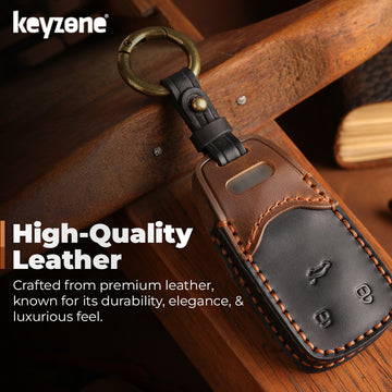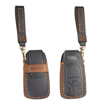 Keyzone dual leather key cover for Audi Q5, A5, A8, Q7, A4, A6 3 button smart key (KDL47)