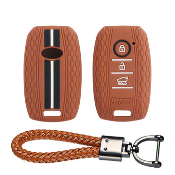 Keycare silicone key cover and keyring fit for : Kia Seltos 3 button smart key (KC-31, Zinc Alloy)
