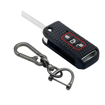 Keycare silicone key cover and keyring fit for : XUV500 flip key (KC-11, Full Leather Keychain)