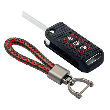 Keycare silicone key cover and keyring fit for : XUV500 flip key (KC-11, Leather Woven Keychain)