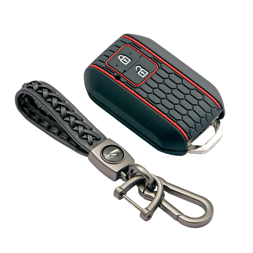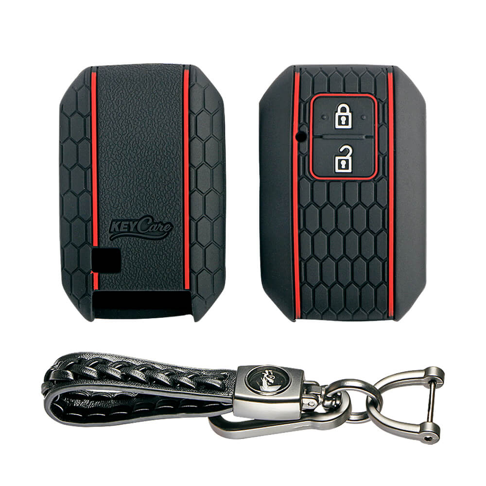 Keycare silicone key cover and keychain fit for : Victoris, Baleno, Jimny, Grand Vitara, Xl6, Ignis, Swift, Ertiga, Fronx, New Brezza 2022, Dzire 2b smart key (KC-05, Leather Woven keychain)