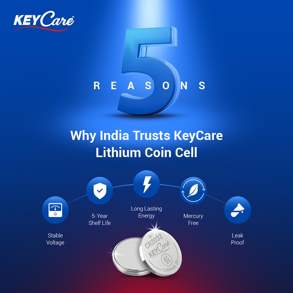 Multi-Variant Availability: KeyCare offers a comprehensive range of coin batteries to cater to your specific needs. You can choose from other variants ensuring you have the right battery for each of your devices.