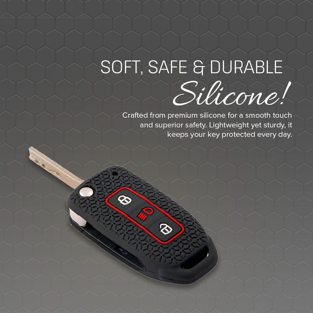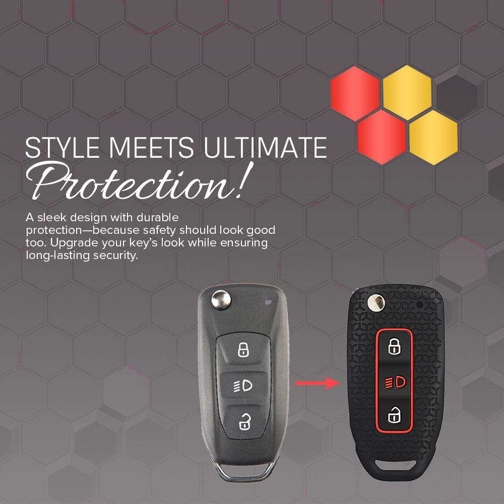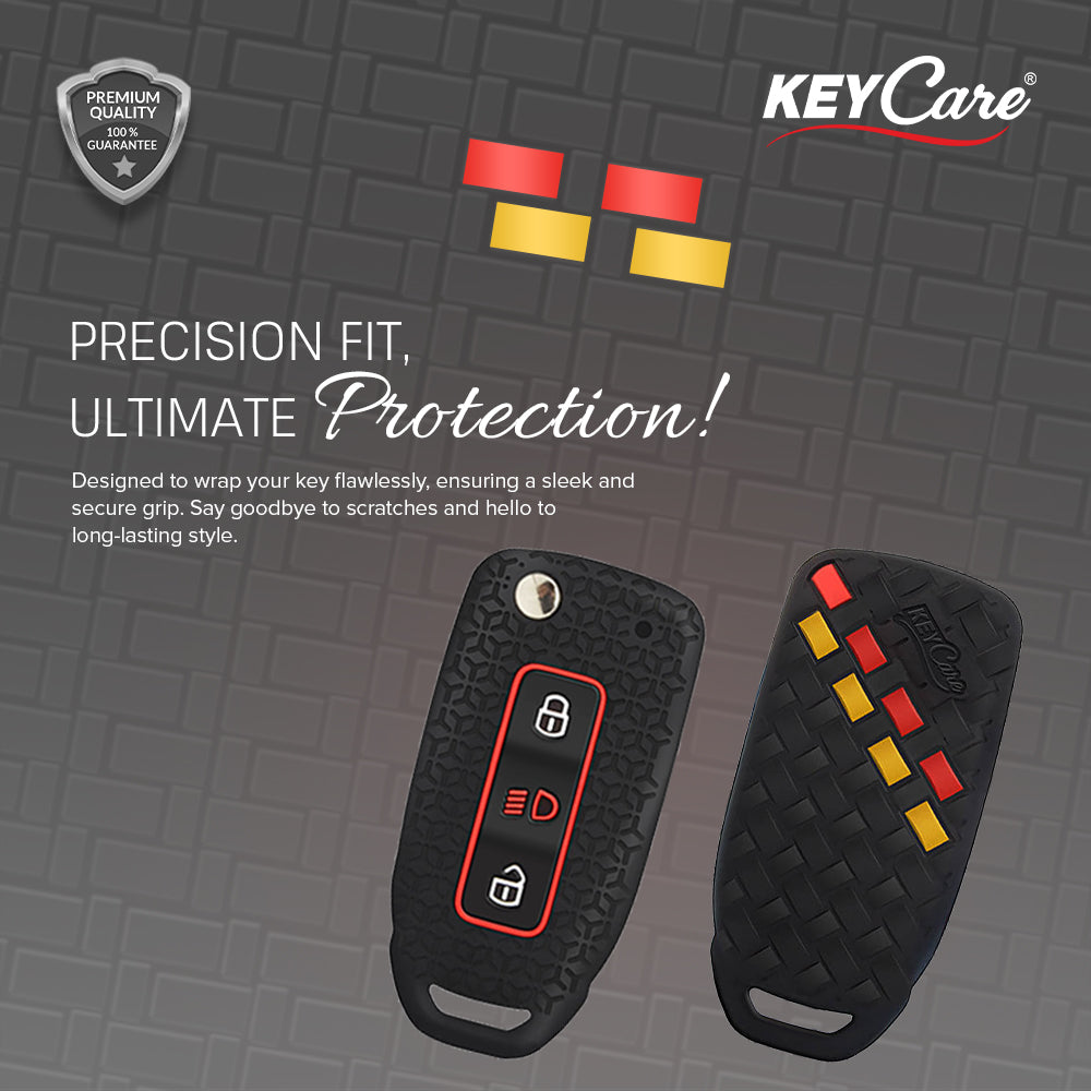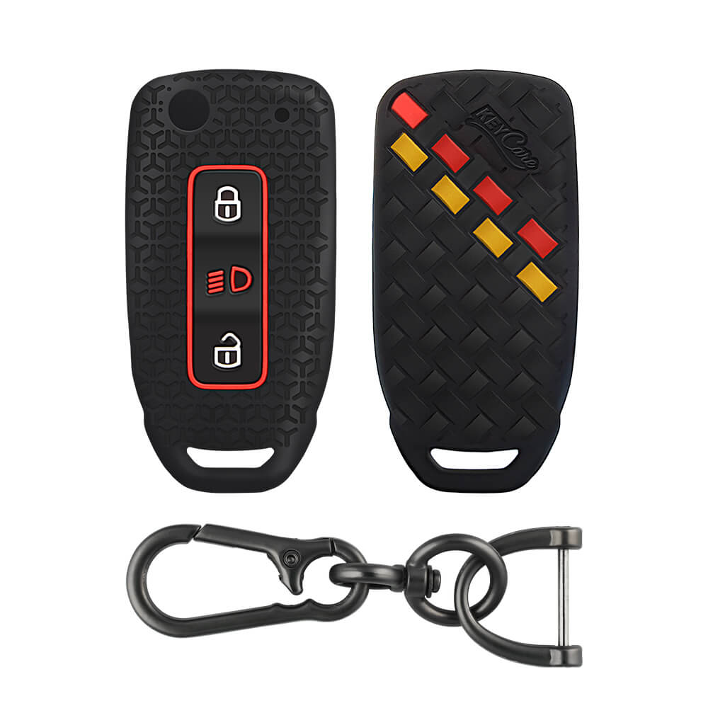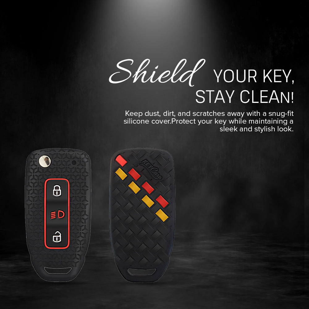 Keycare DE series silicone key cover fit for: Tata Curvv, Nexon, Harrier, Safari, Altroz, Punch, Tigor, Tiago, Zest, Bolt, Hexa flip key (DE-29, Zinc Alloy)