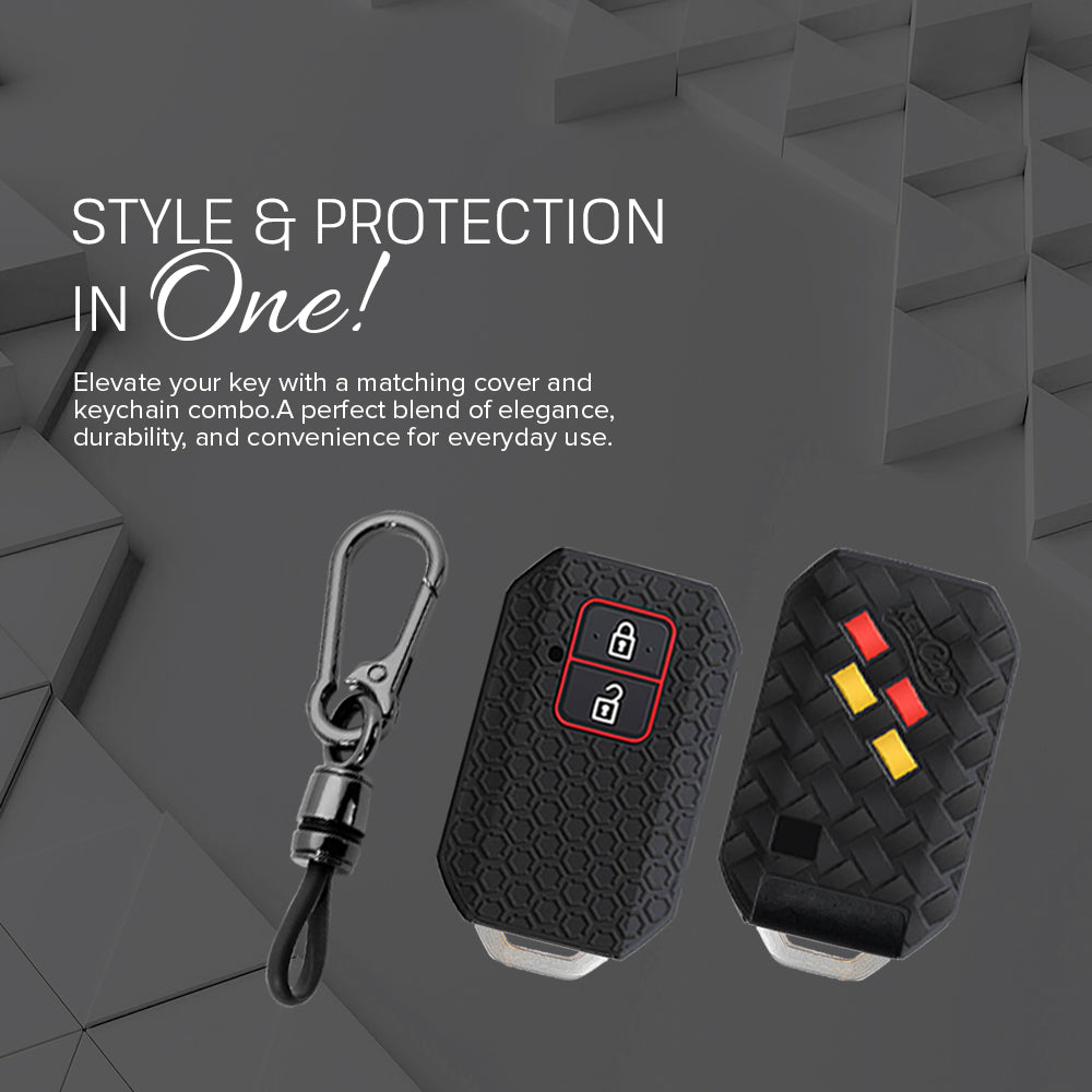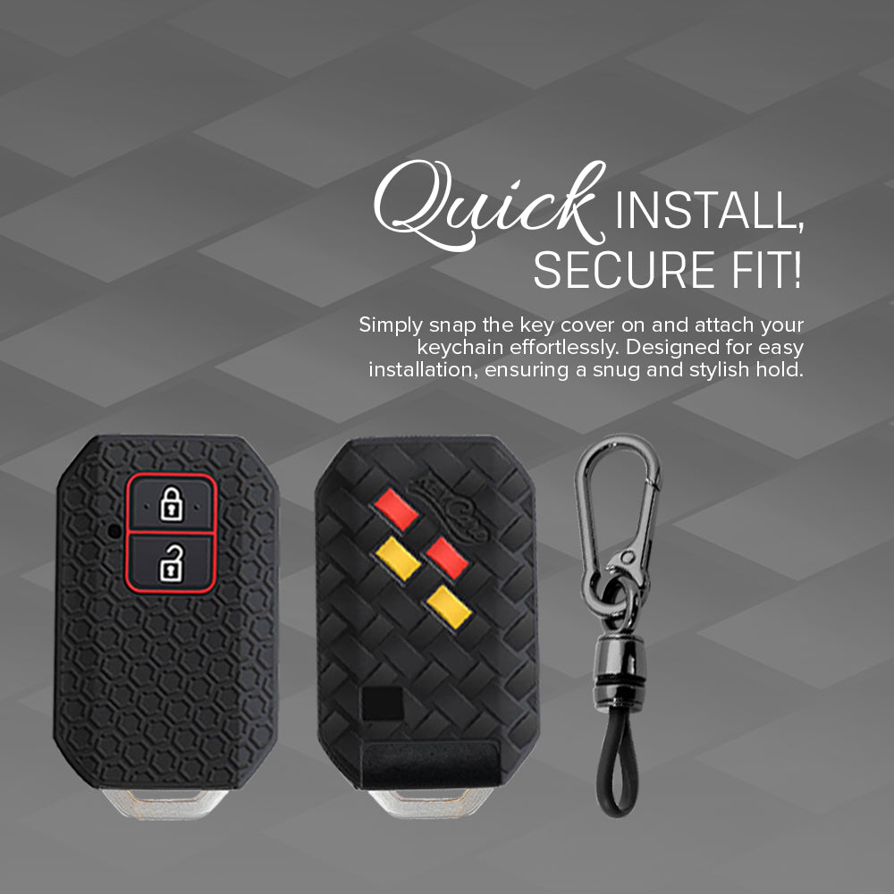Keycare DE Series silicone key cover & keychain for Victoris, Baleno, Jimny, Fronx, Grand Vitara, Xl6, Ignis, Swift, Ertiga, Brezza, Dzire, Glanza, Urban Cruiser Hyryder 2b smart key (DE05, Domi)