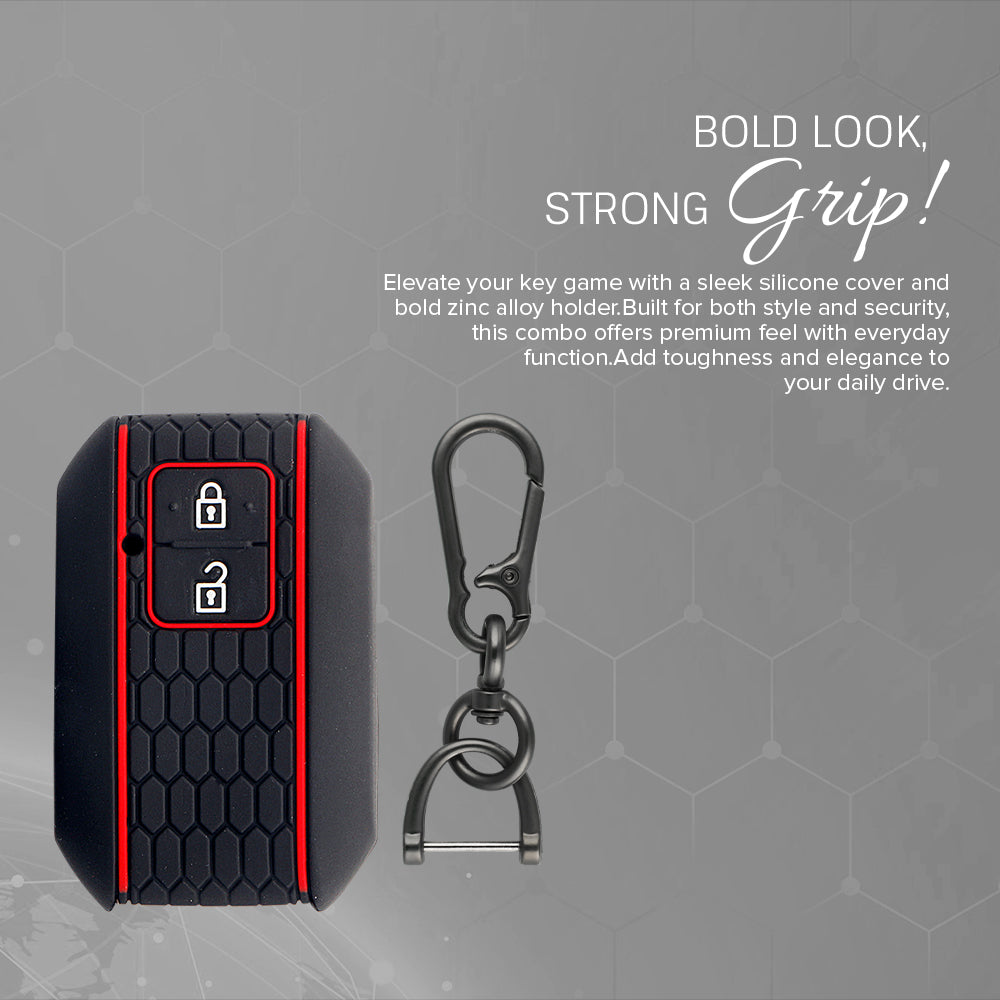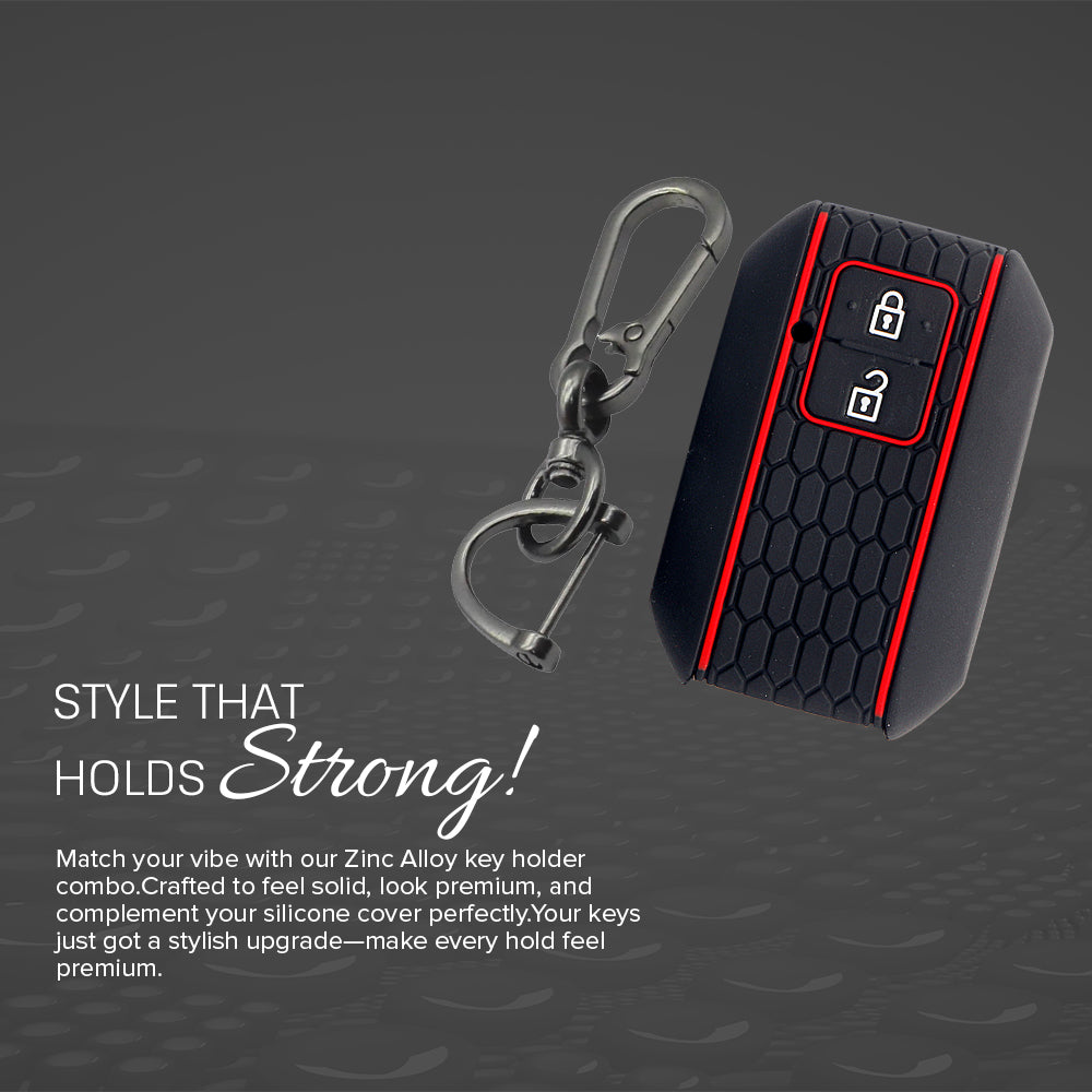 Keycare silicone key cover and keychain fit for : Victoris, Baleno, Jimny, Xl6, Ignis, Swift, Ertiga, New Brezza 2022, Fronx, Dzire 2b smart key (KC-05, Zinc Alloy)