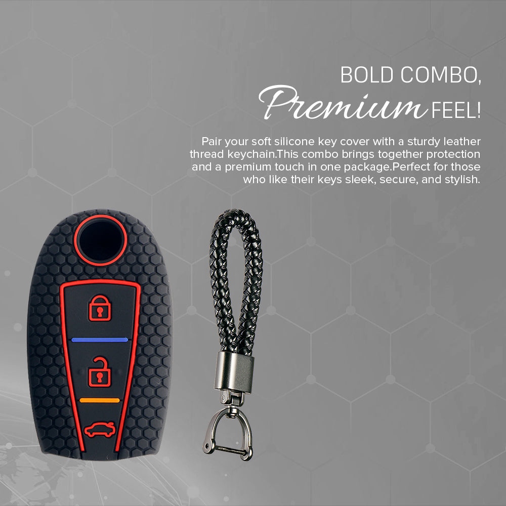 Keycare silicone key cover and keychain fit for : Ciaz, Baleno, S-cross, Vitara Brezza, Ignis, Swift, Ertiga 3b smart key (KC-04, Leather Thread keychain)