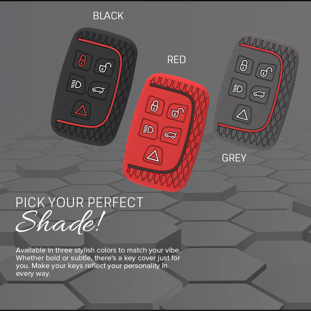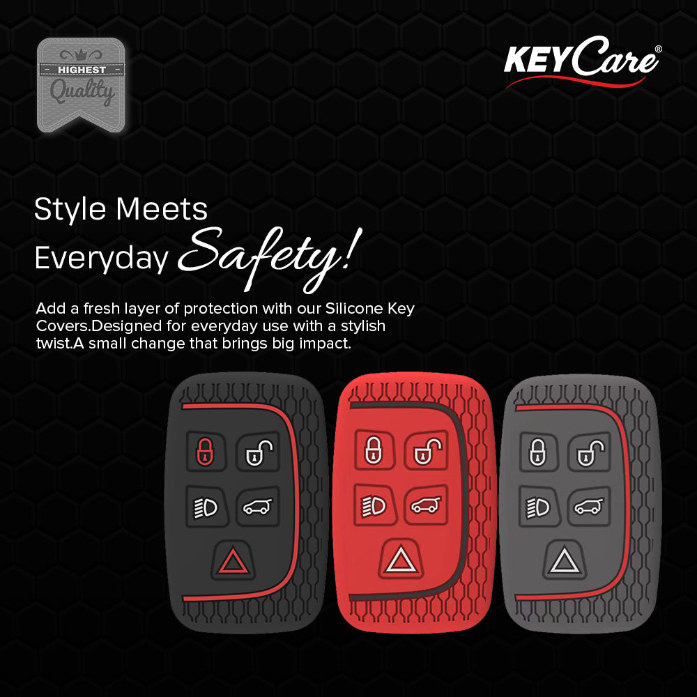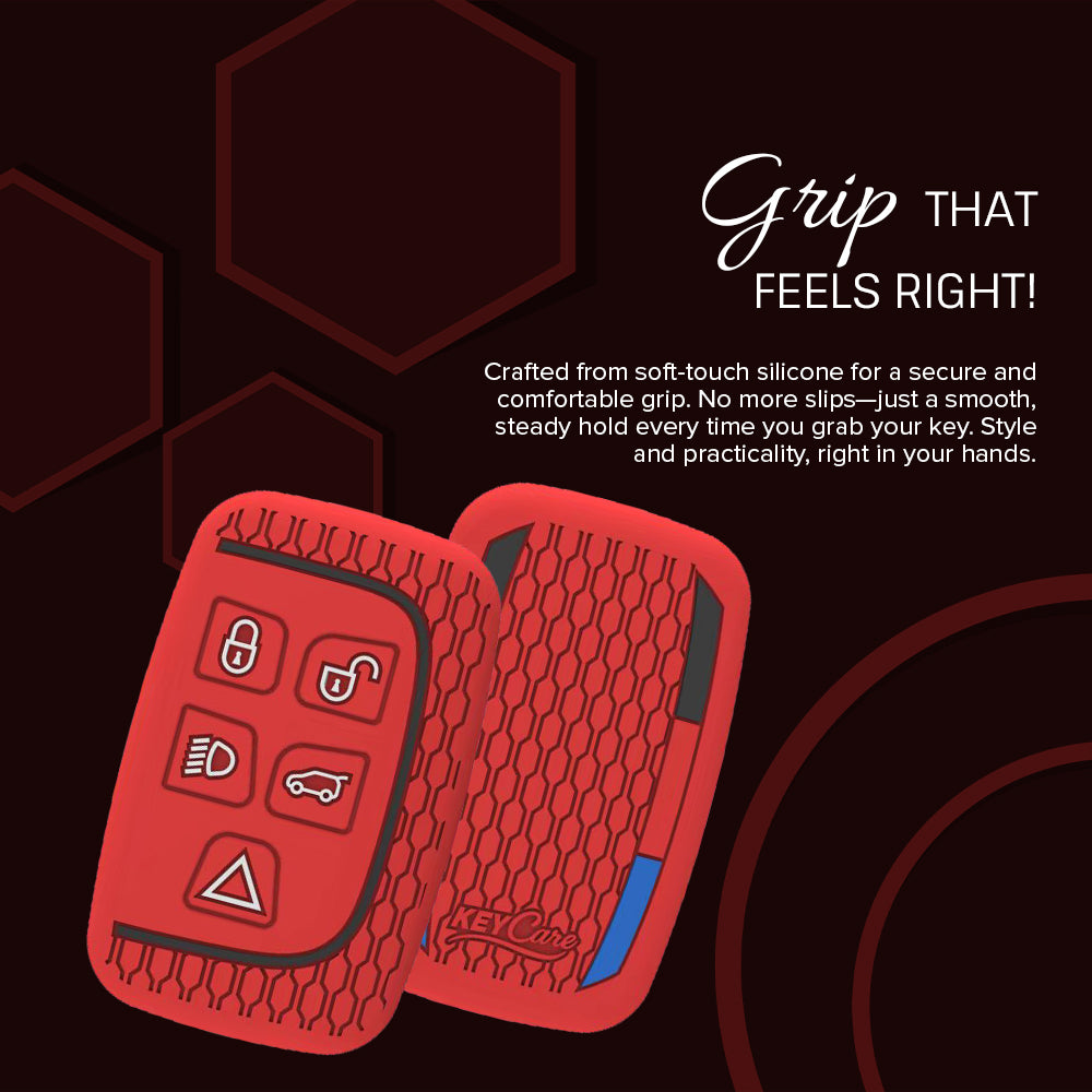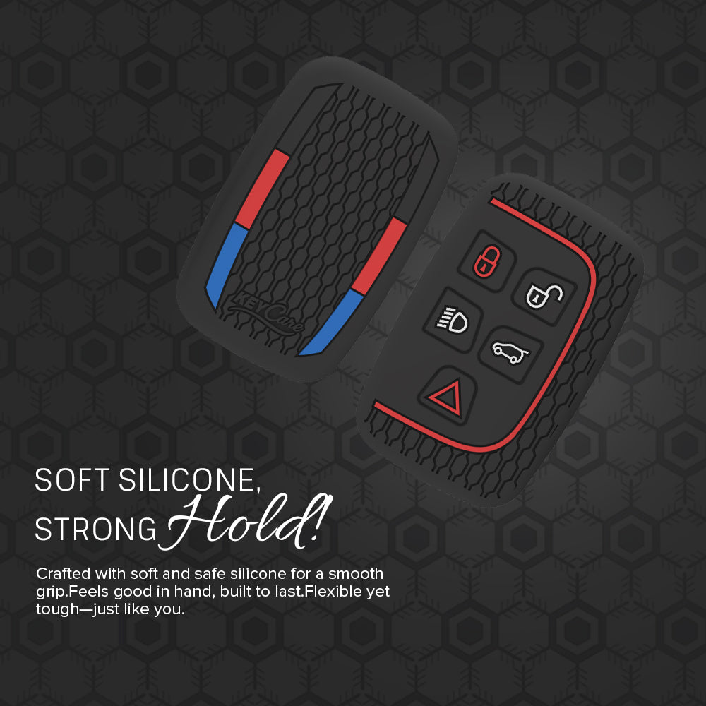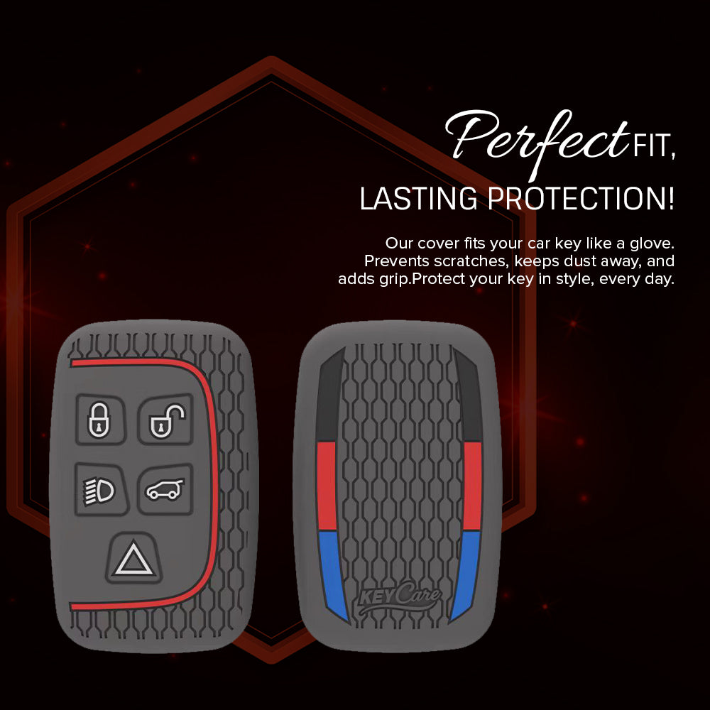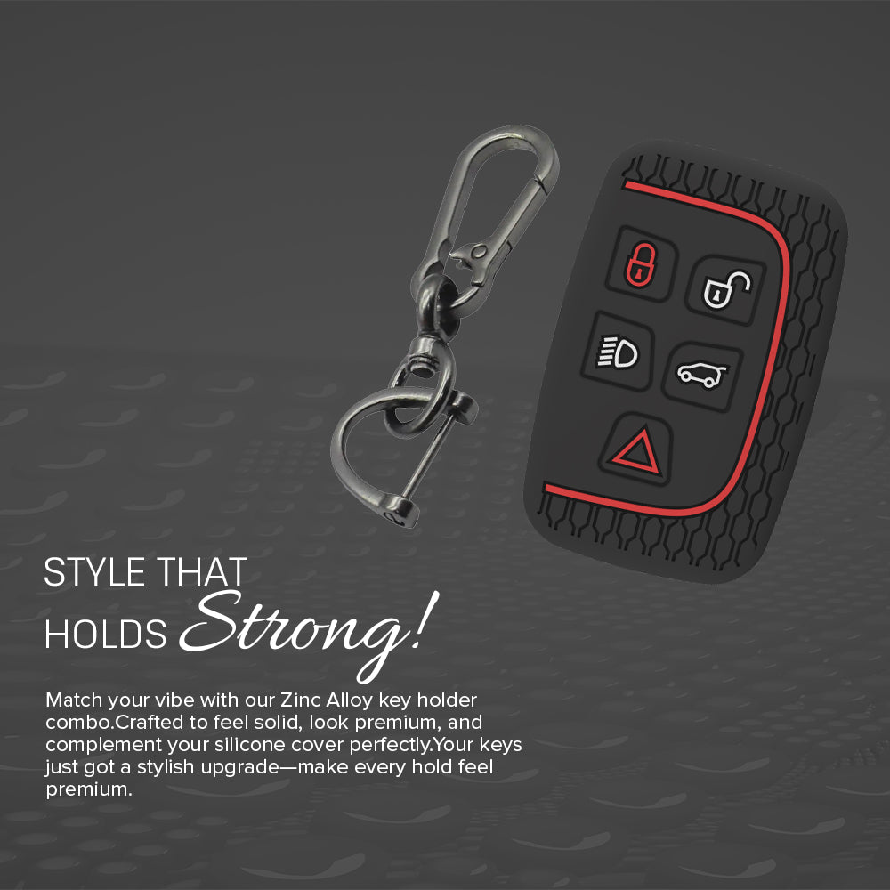 Keycare silicone key cover and keychain fit for: Jaguar XF XJ XE F-PACE F-Type Range Rover Evoque Velar Discovery LR4 Land Rover Sport 5 button smart key (KC72, Zinc Alloy)