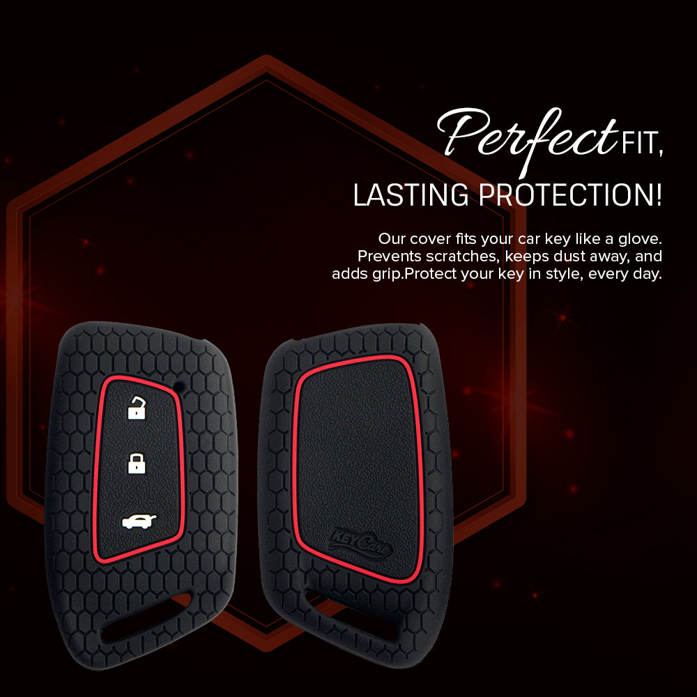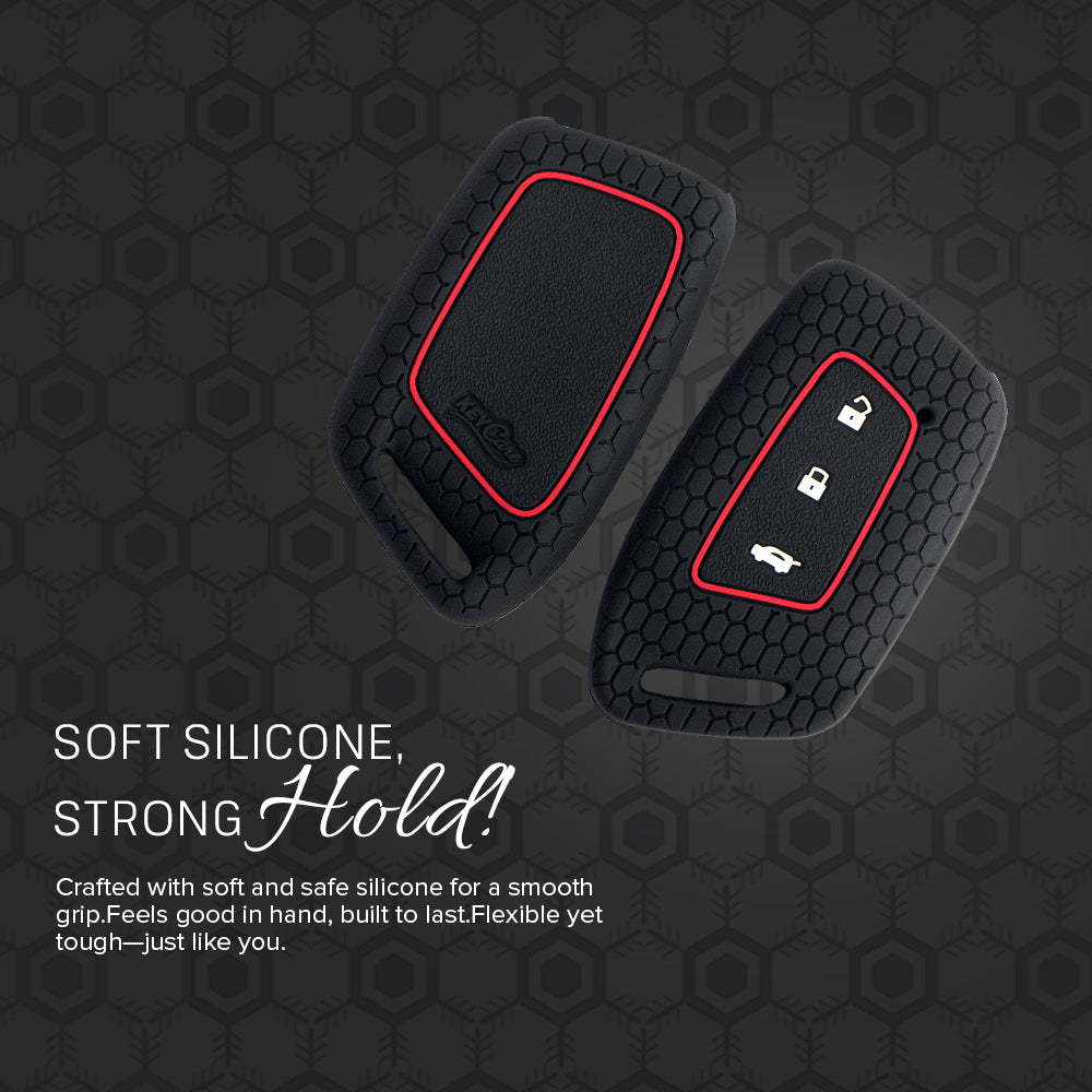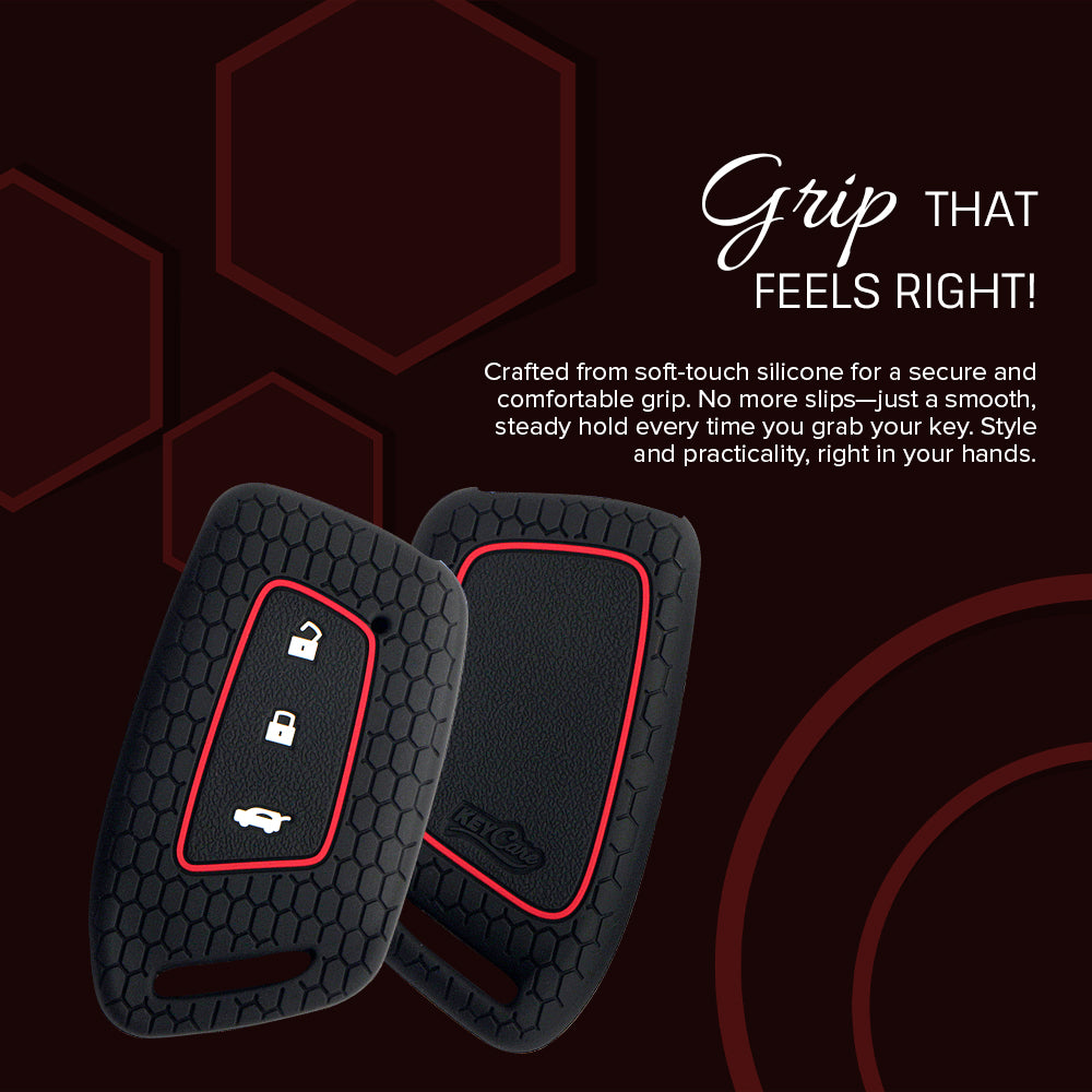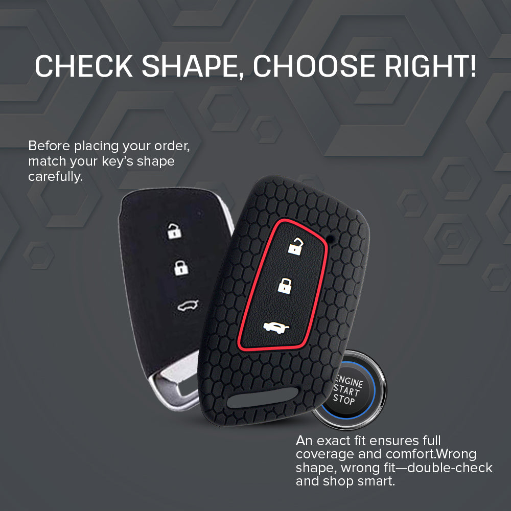Keycare silicone key cover and keychain for MG Hector, Windsor EV smart key (KC-64, Leather Woven Keychain)