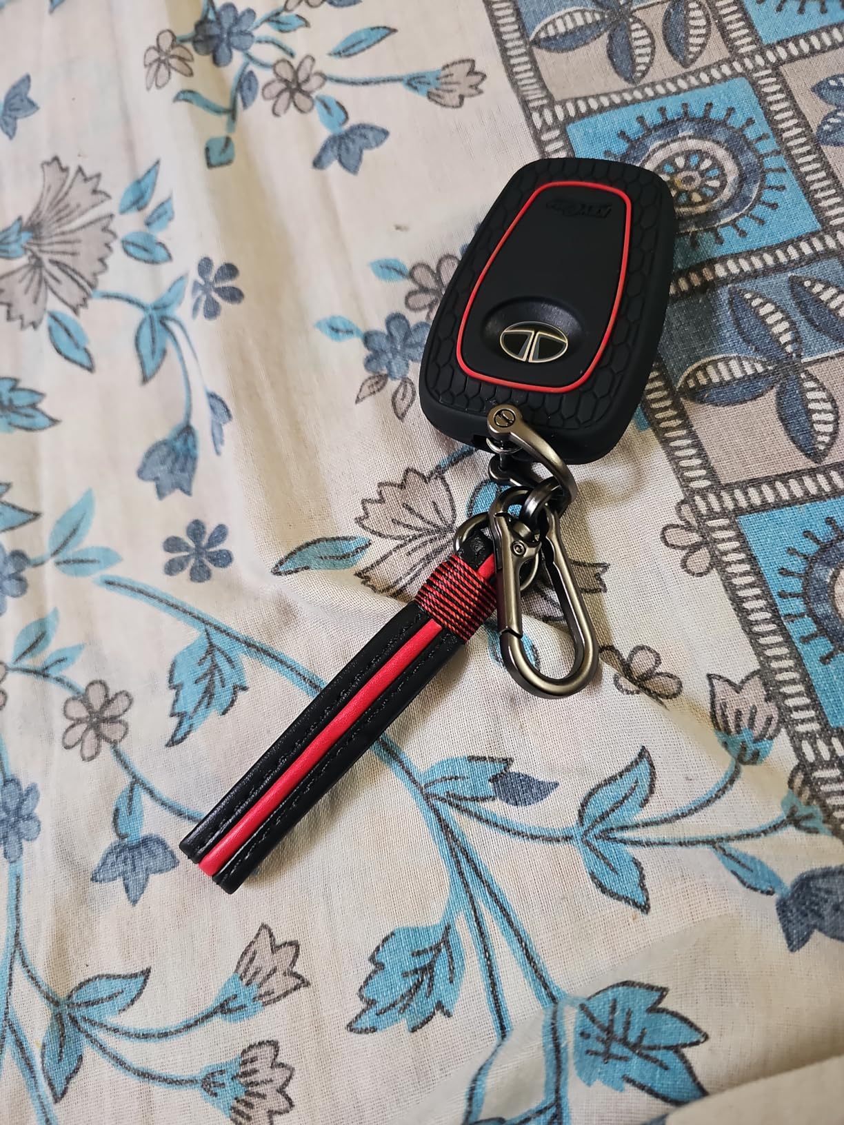 Keycare silicone key cover and keychain fit for : Tata Nexon, Altroz, Harrier, Safari, Punch, Tigor 4 button smart key (KC-08, Full leather keychain)