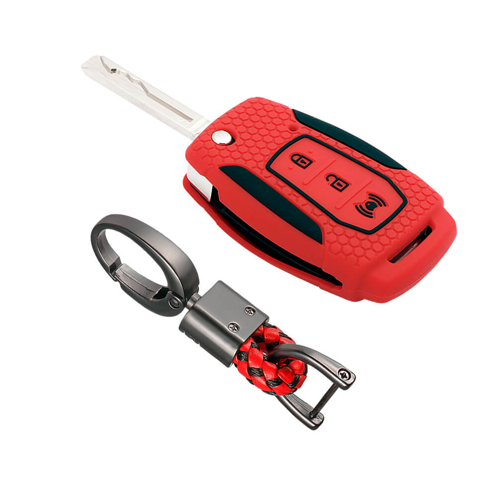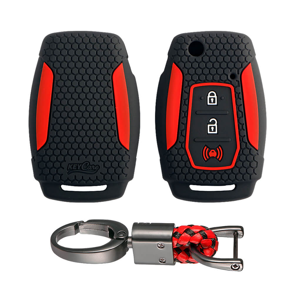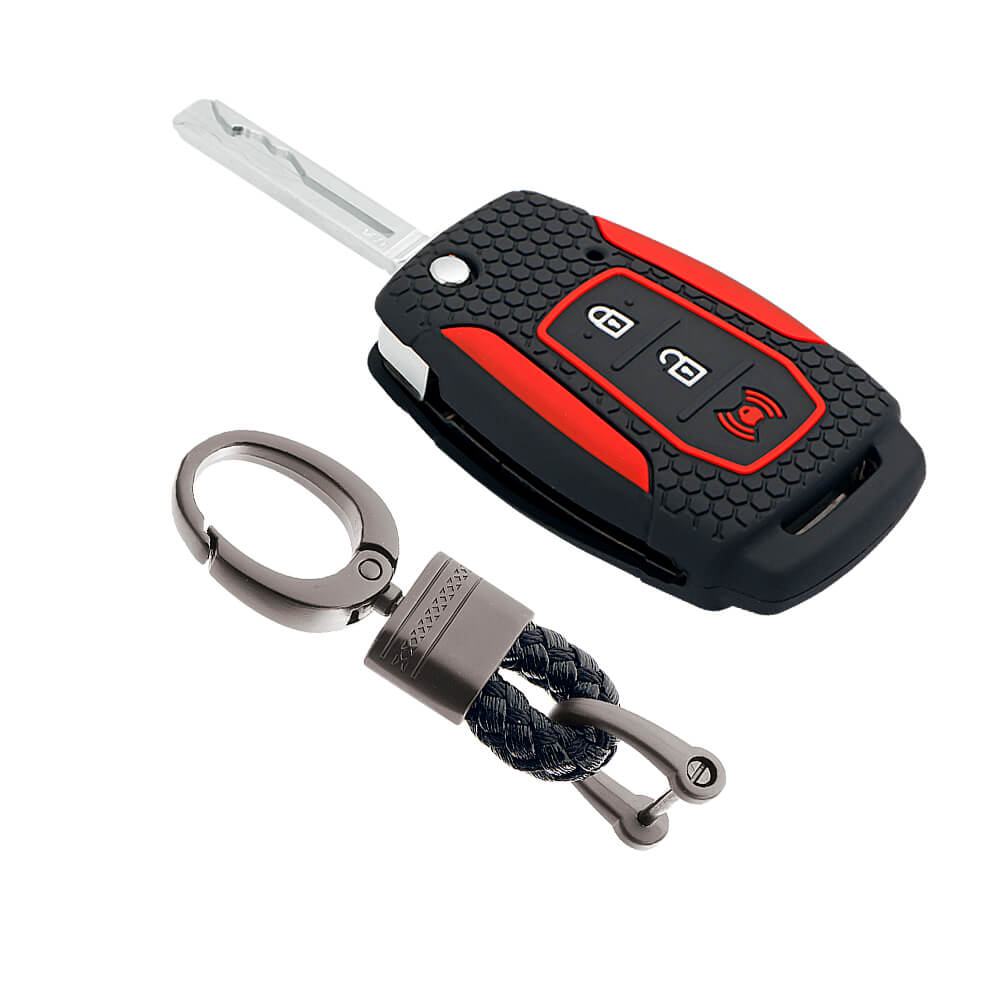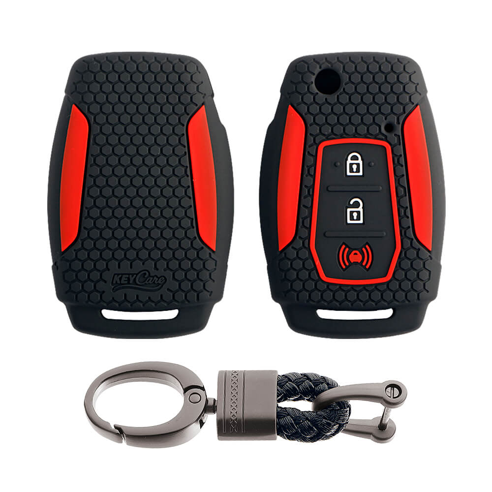 Keycare silicone key cover and keychain fit for : Xuv300, Alturas G4 flip key (KC-25, Alloy keychain black)