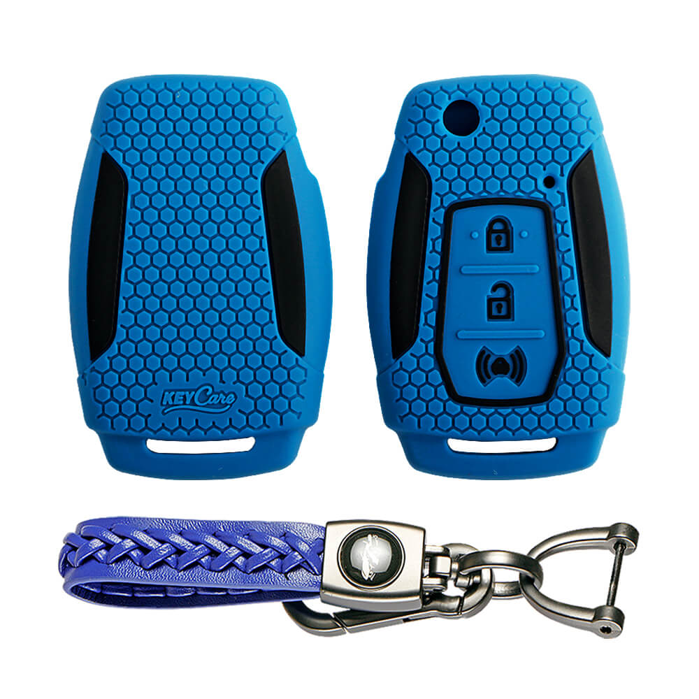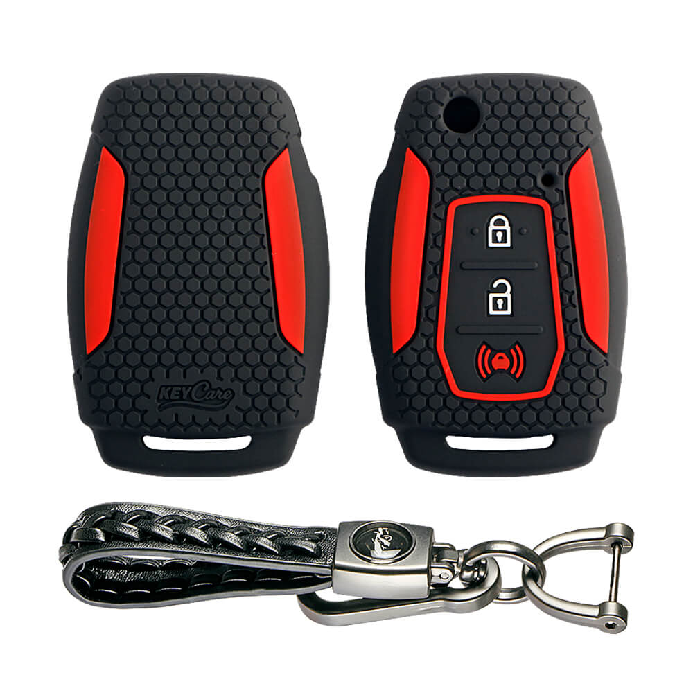 Keycare silicone key cover and keychain fit for : Xuv300, Alturas G4 flip key (KC-25, Leather Woven Keychain)
