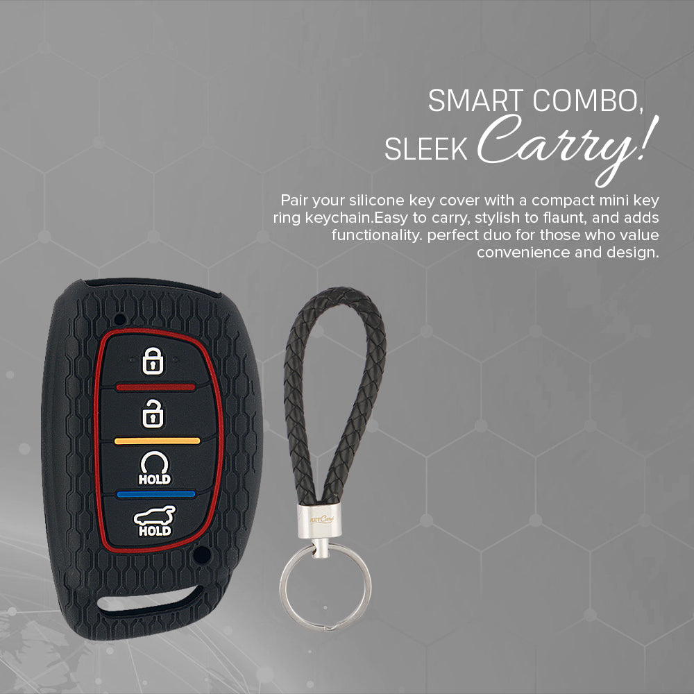 Keycare silicone key cover and keyring fit for : Alcazar and Creta 2021 4 button smart key (KC-67, KCMini Keyring)
