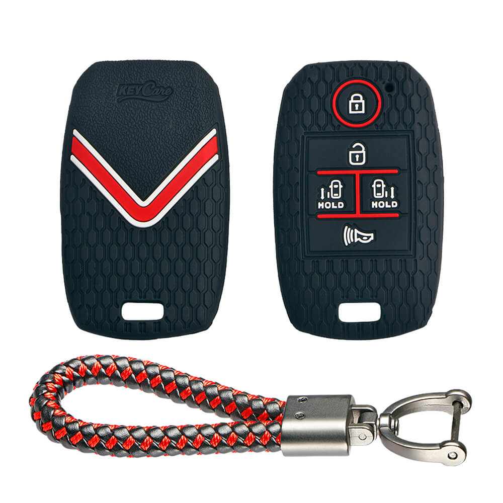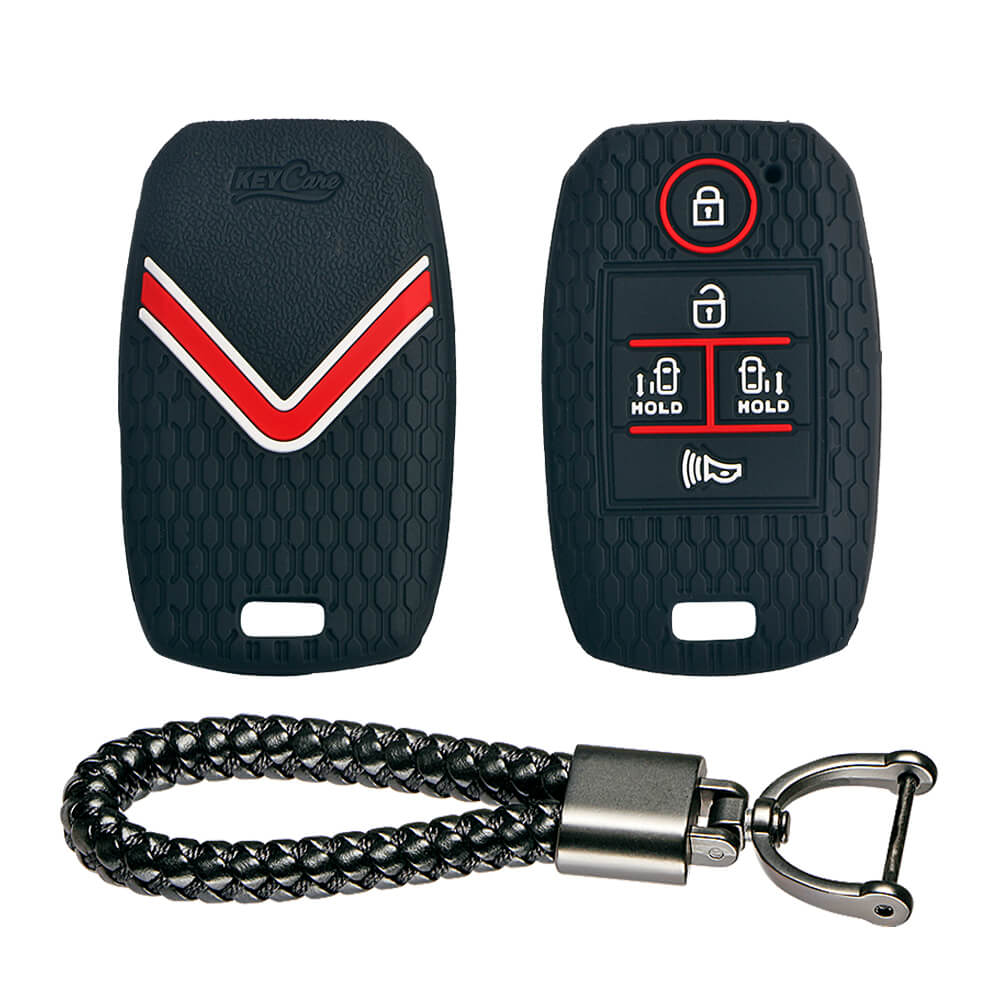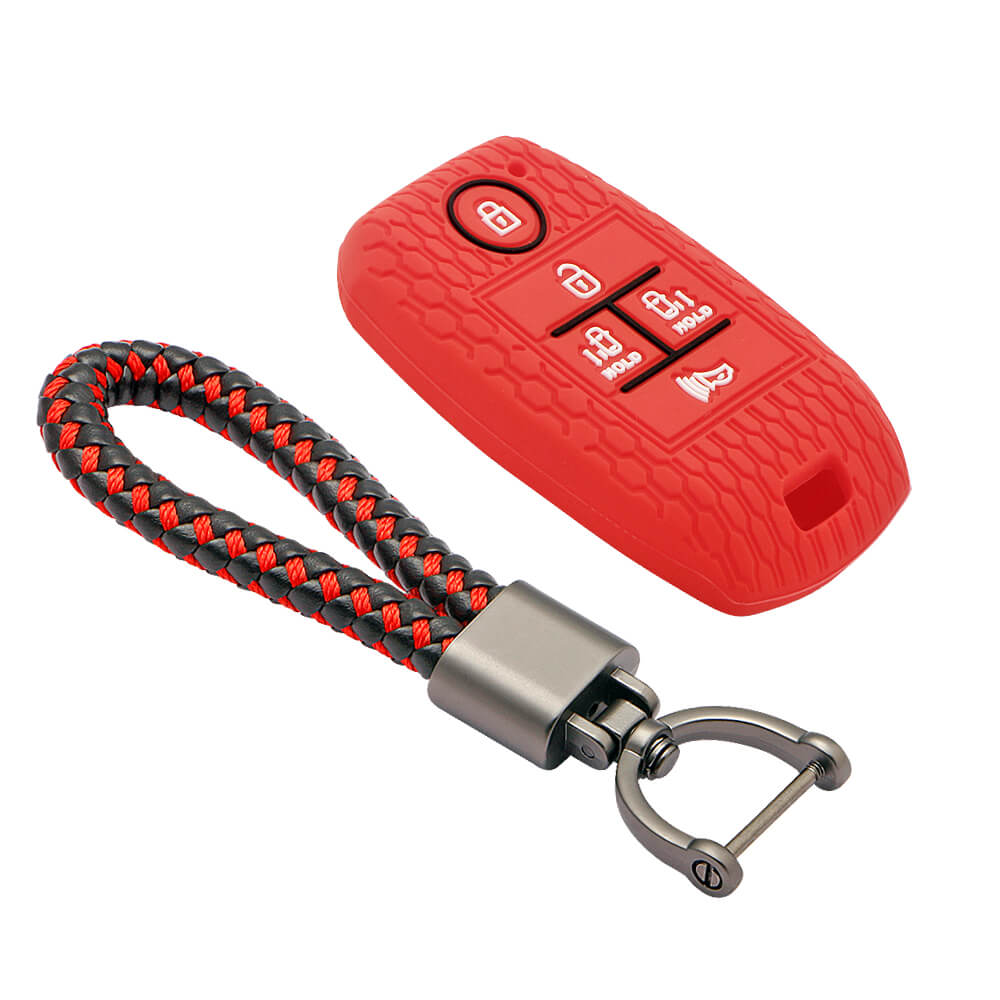 Keycare silicone key cover and keyring fit for : Carnival 5 button smart key (KC-51, Leather Thread Keychain)