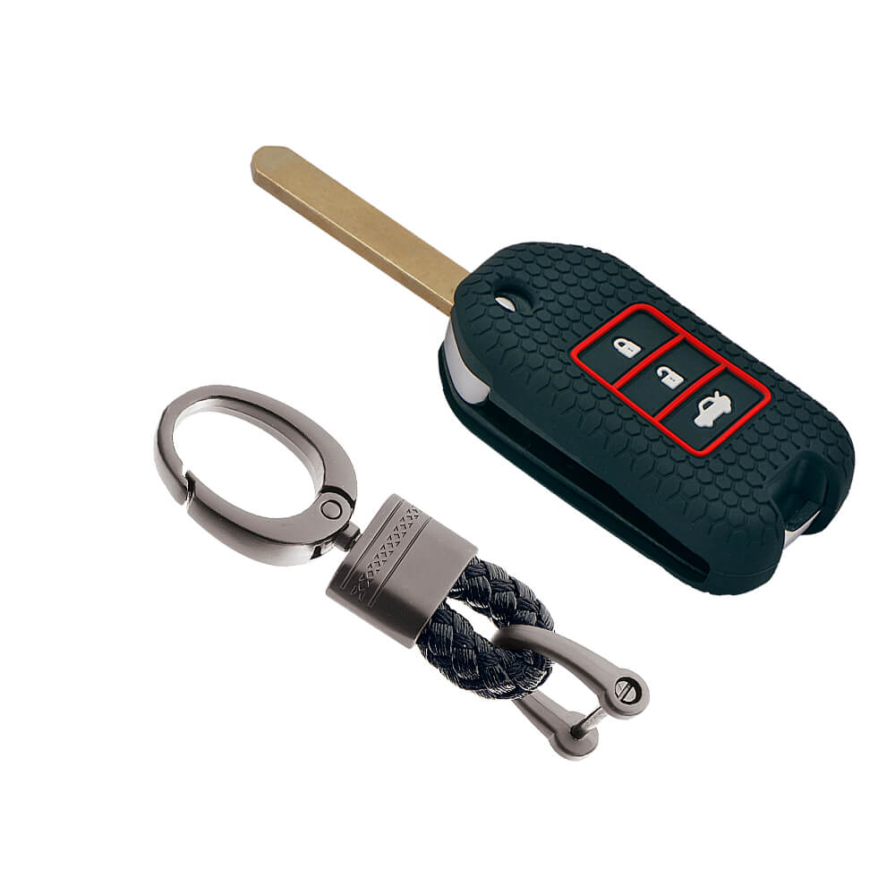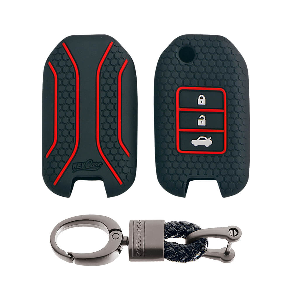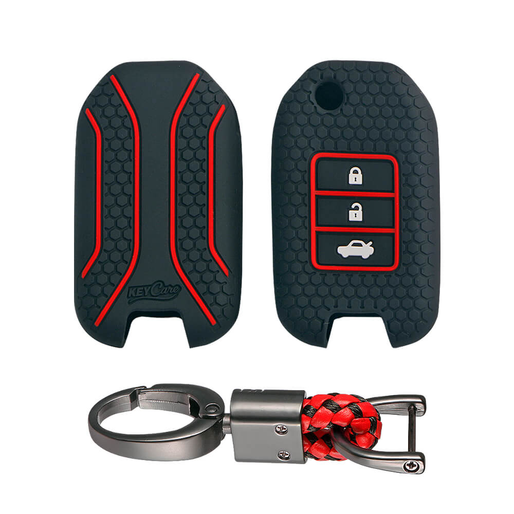 Keycare silicone key cover and keyring fit for : City, Wr-v flip key (KC-50, Alloy Keychain)