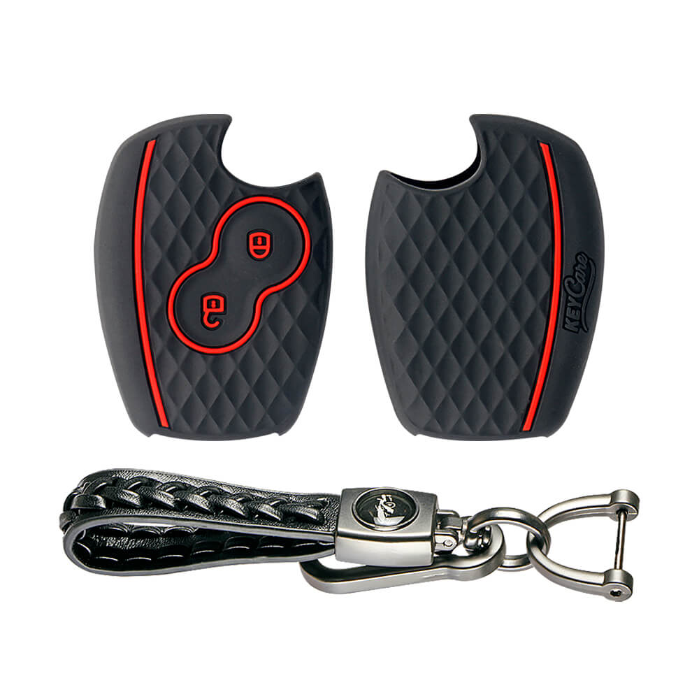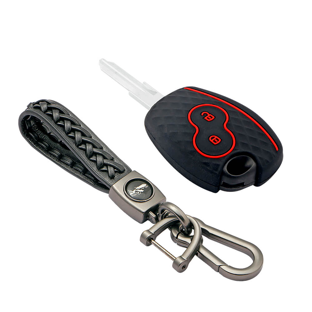 Keycare silicone key cover and keyring fit for : Logan, Duster, Verito, Lodgy 2 button remote key (KC-20, Leather Woven Keychain)