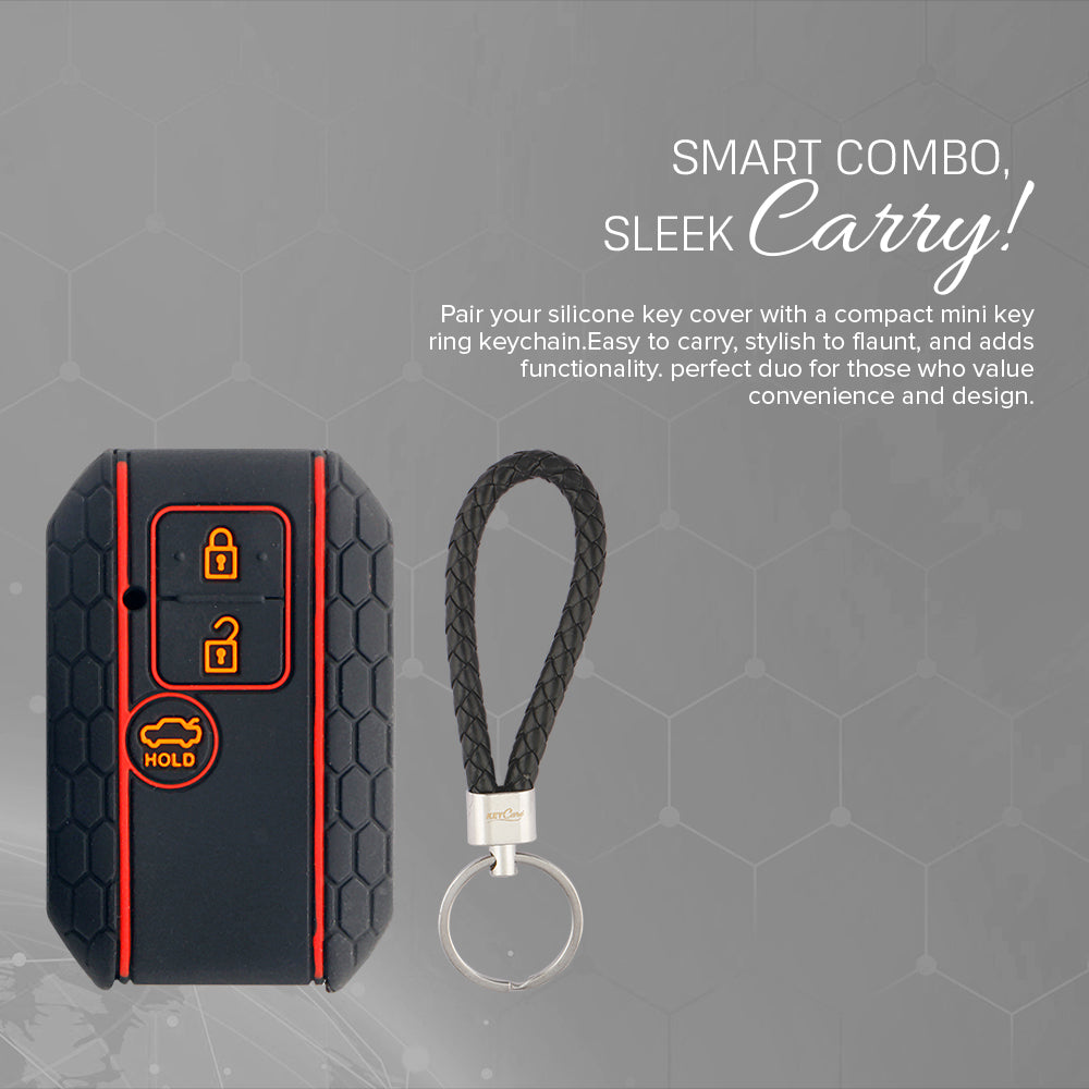 Keycare silicone key cover and keyring fit for : Victoris, Dzire, Ertiga 3b smart key (KC-06, KCMini keyring)