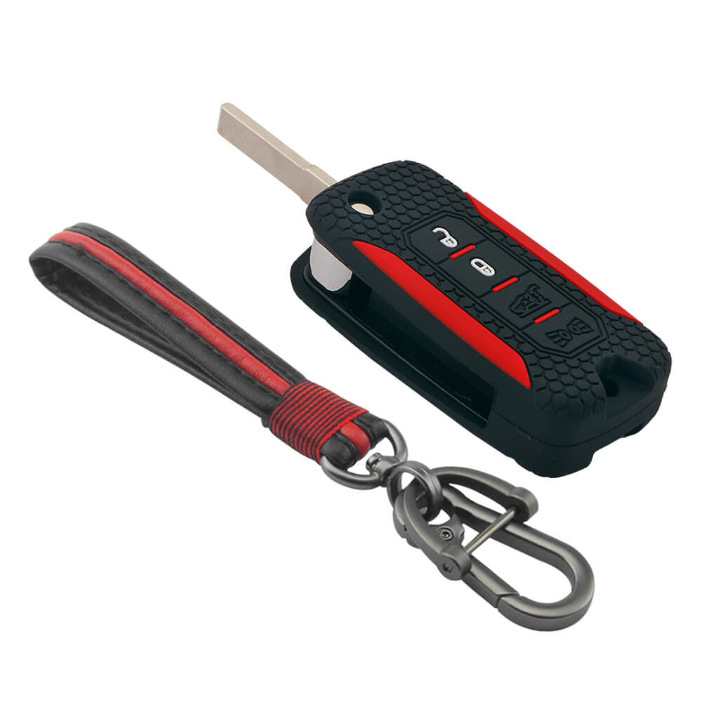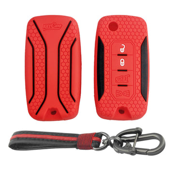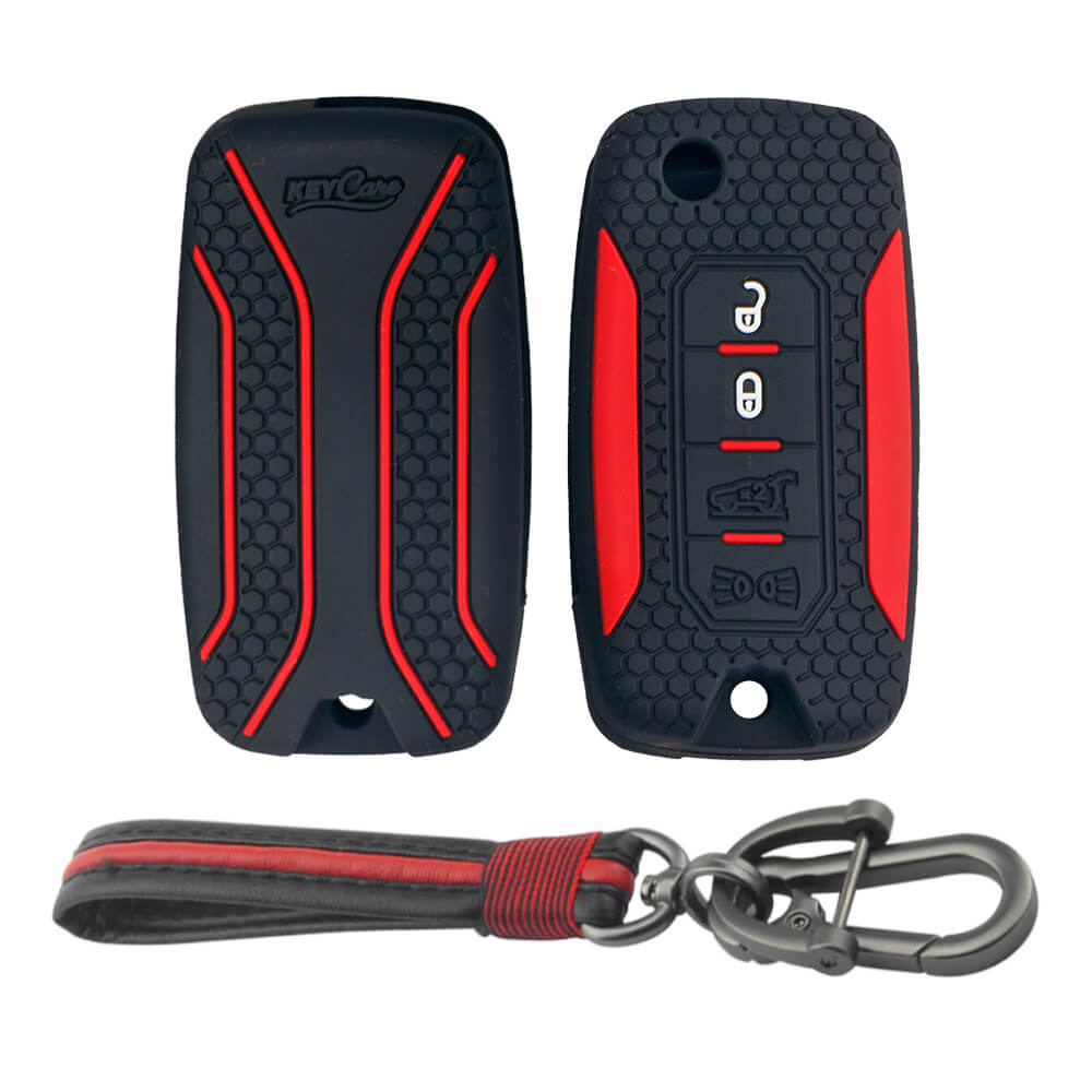 Keycare silicone key cover and keyring fit for : Jeep Compass, Compass Trailhawk, Wrangler (KC-56, Full Leather Keychain)