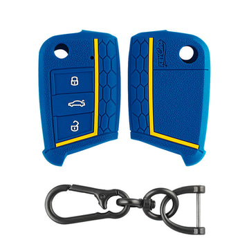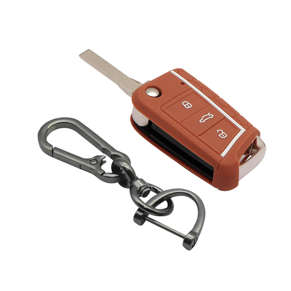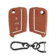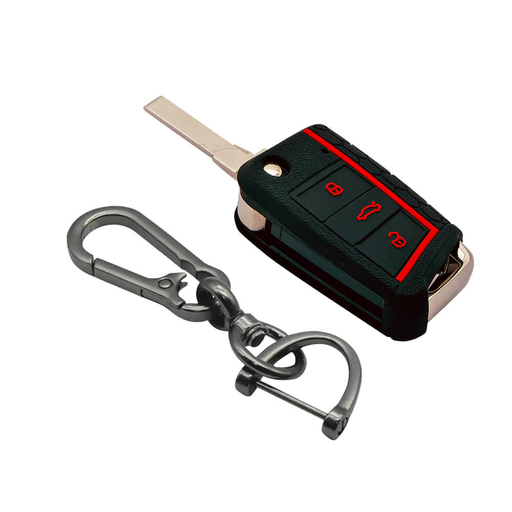 Keycare silicone key cover and keyring fit for : Karoq, Octavia, Superb, Kodiaq, Slavia flip key (KC-44, Zinc Alloy)