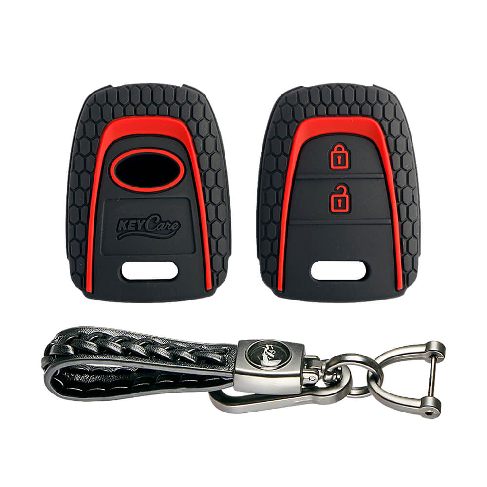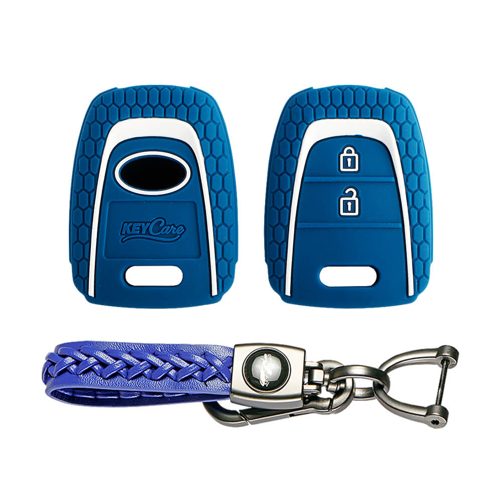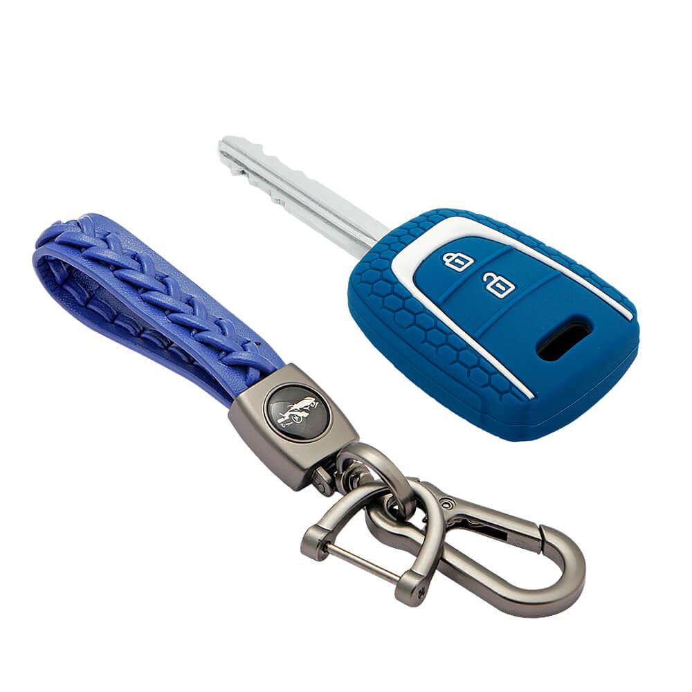 Keycare silicone key cover and keyring fit for : Santro, Eon, I10 Grand remote key (KC-27, Leather Woven Keychain)