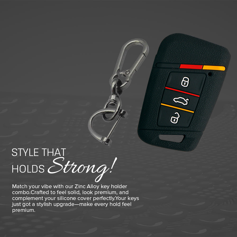 Keycare silicone key cover and keyring fit for : Superb, Kodiaq, Octavia 2014 Onwards smart key (KC-40, Zinc Alloy)