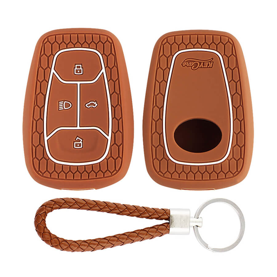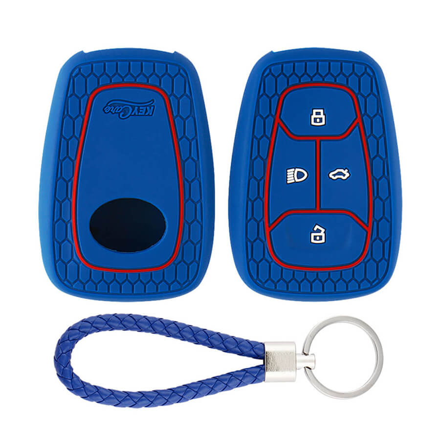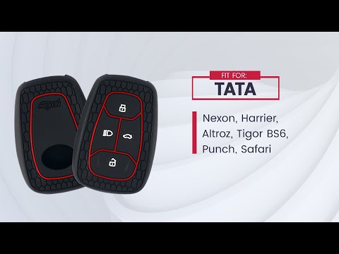 Keycare silicone key cover and keyring fit for : Tata Nexon, Altroz, Harrier, Tigor Bs6, Safari Gold, Punch, Tigor Ev, Safari 2021 4 button smart key (KC-08, KCMini Keyring)