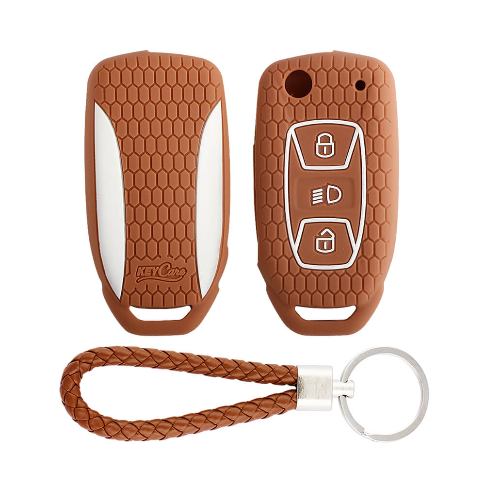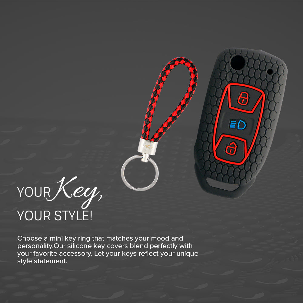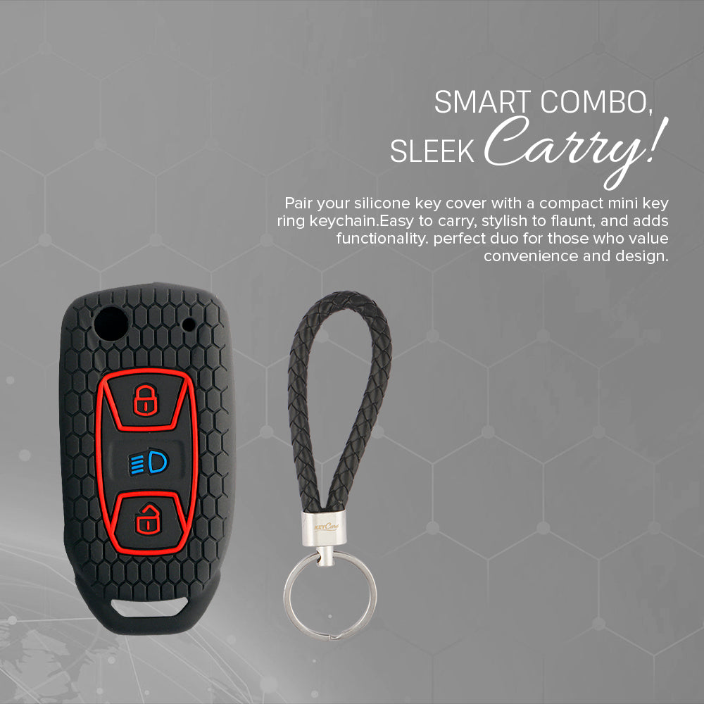 Keycare silicone key cover and keyring fit for : Tata Curvv, Nexon, Harrier, Safari, Altroz, Punch, Tigor, Tiago, Zest, Bolt, Hexa flip key (KC-29, KCMini Keyring)