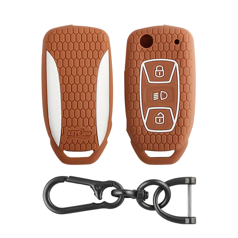 Keycare silicone key cover and keyring fit for: Tata Curvv, Nexon, Harrier, Safari, Altroz, Punch, Tigor, Tiago, Zest, Bolt, Hexa flip key (KC-29, Zinc Alloy)
