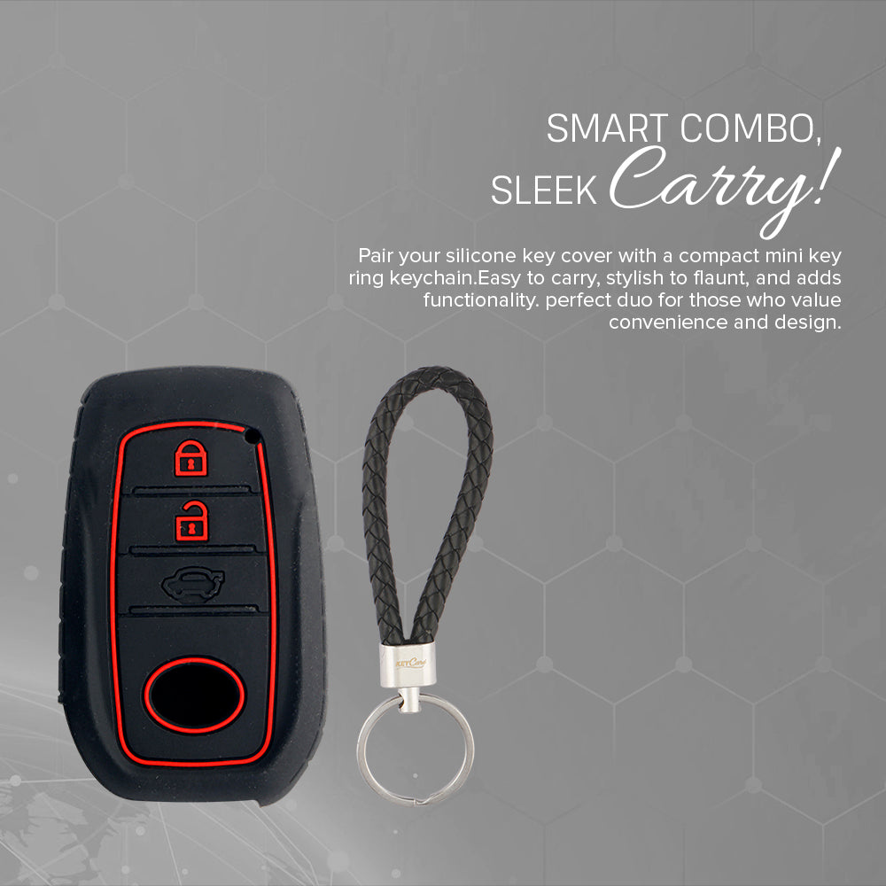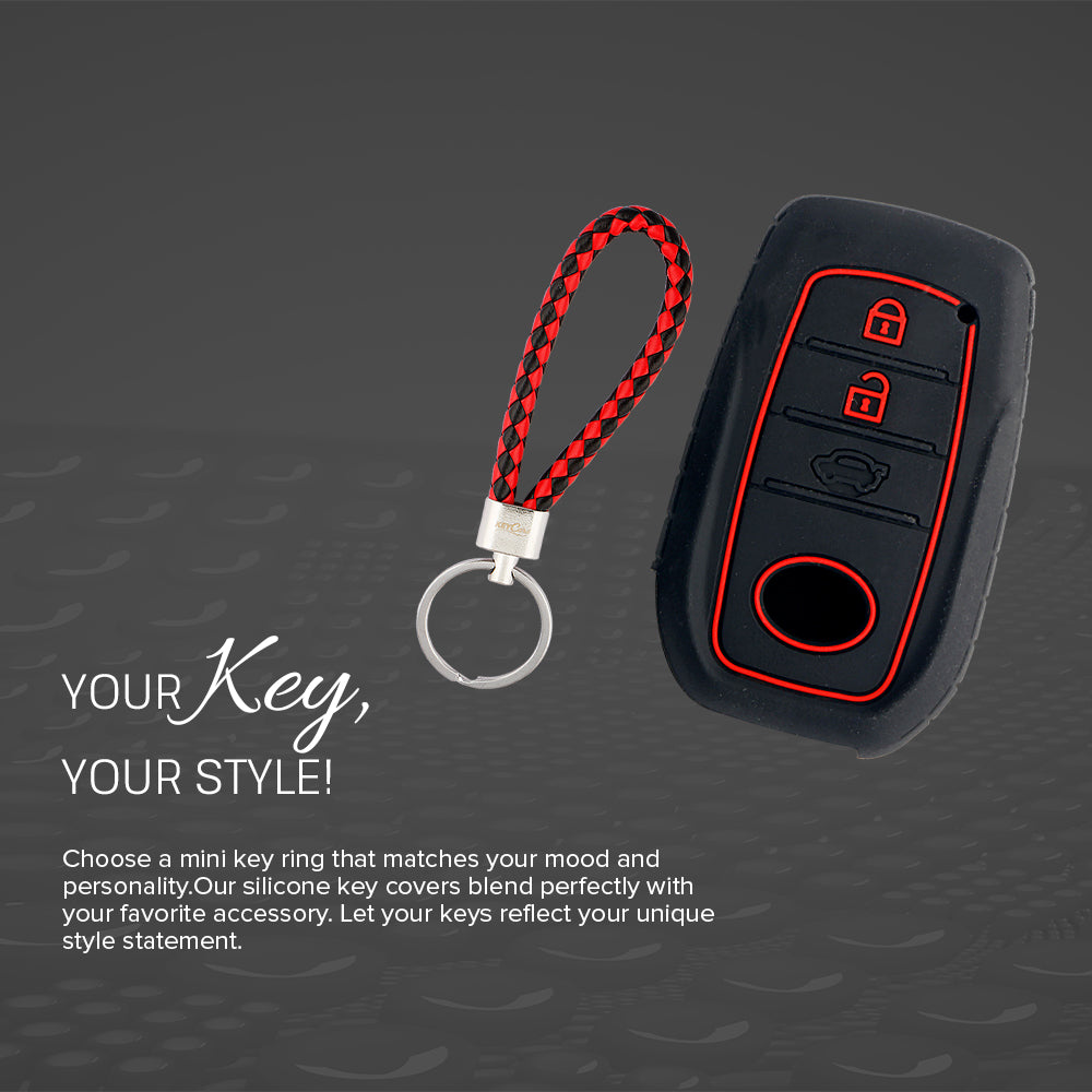 Keycare silicone key cover and keyring fit for : Toyota Innova Crysta, Innova HyCross, Hilux, Fortuner, Fortuner Facelift 2021, Fortuner Legender 2021 smart key (KC-18, KCMini Keyring)