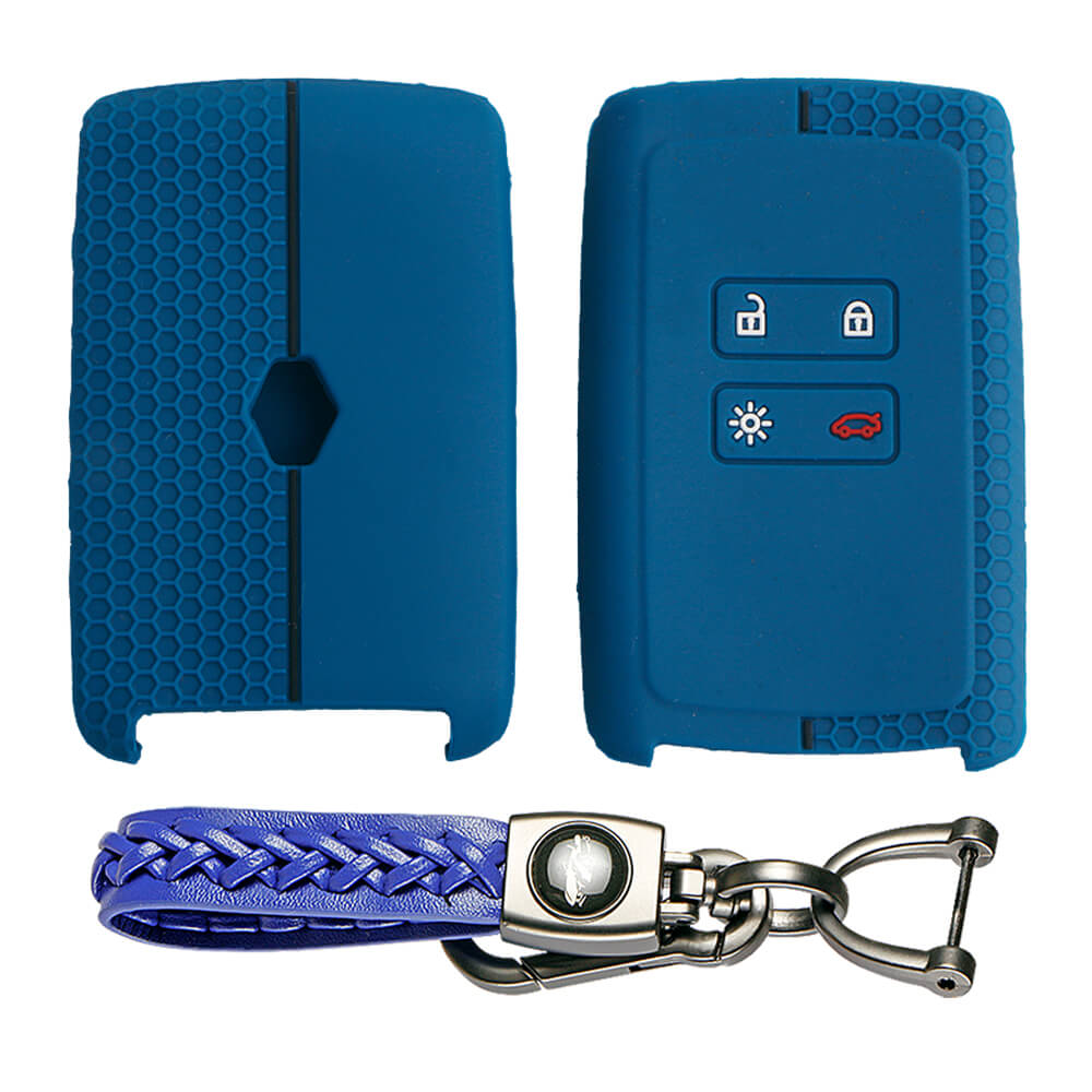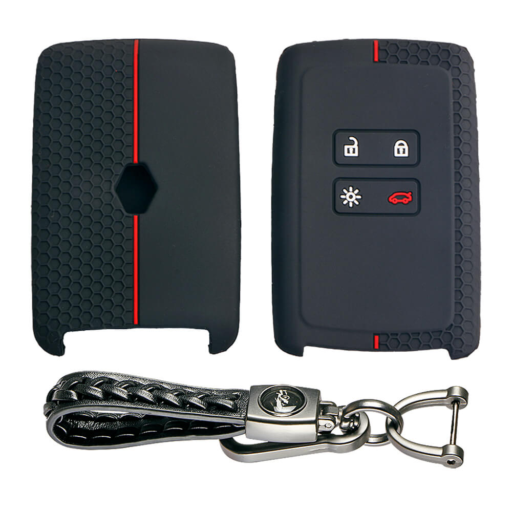 Keycare silicone key cover and keyring fit for : Triber, Kiger smart card (KC-46, Leather Woven Keychain)