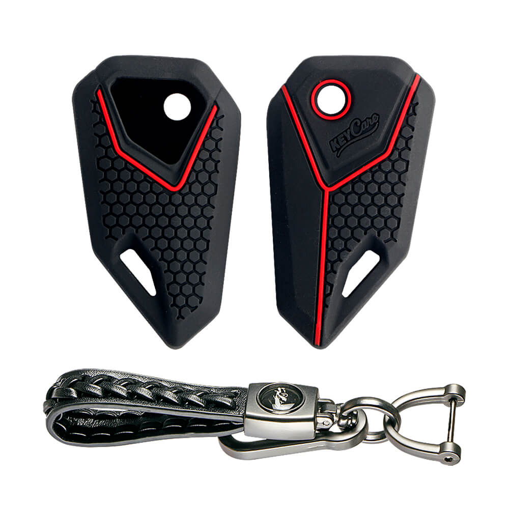 Keycare silicone key cover and keyring fit for : Universal Bike flip key (KC-15, Leather Woven Keychain)