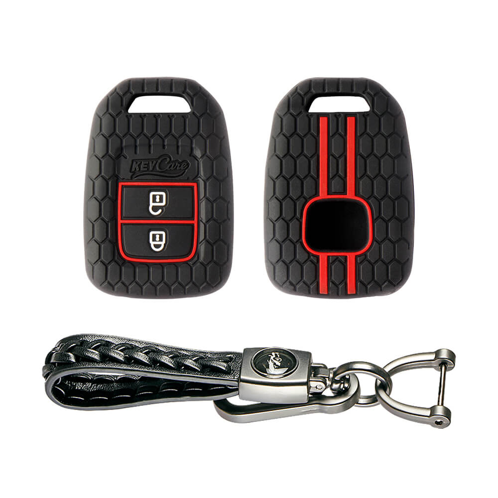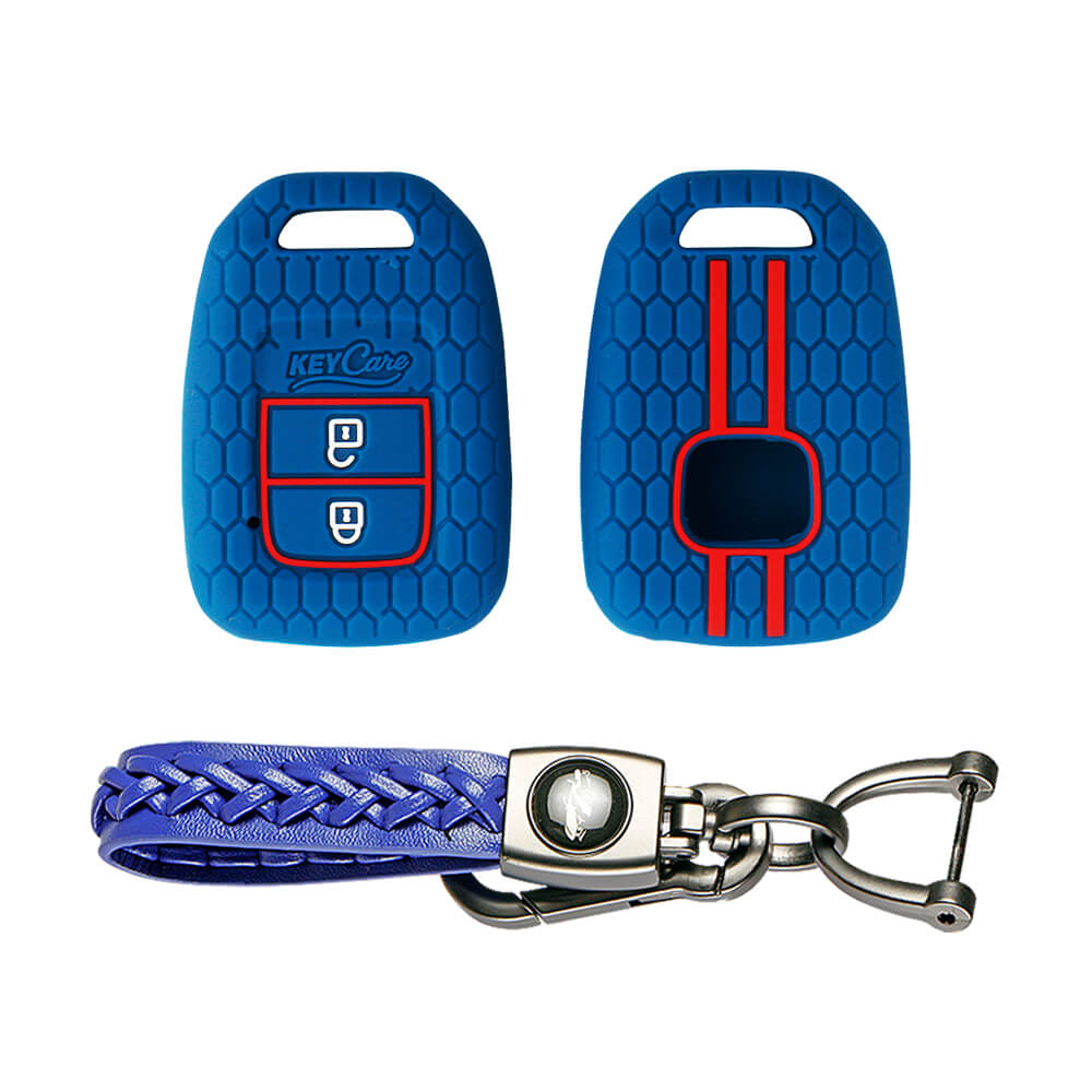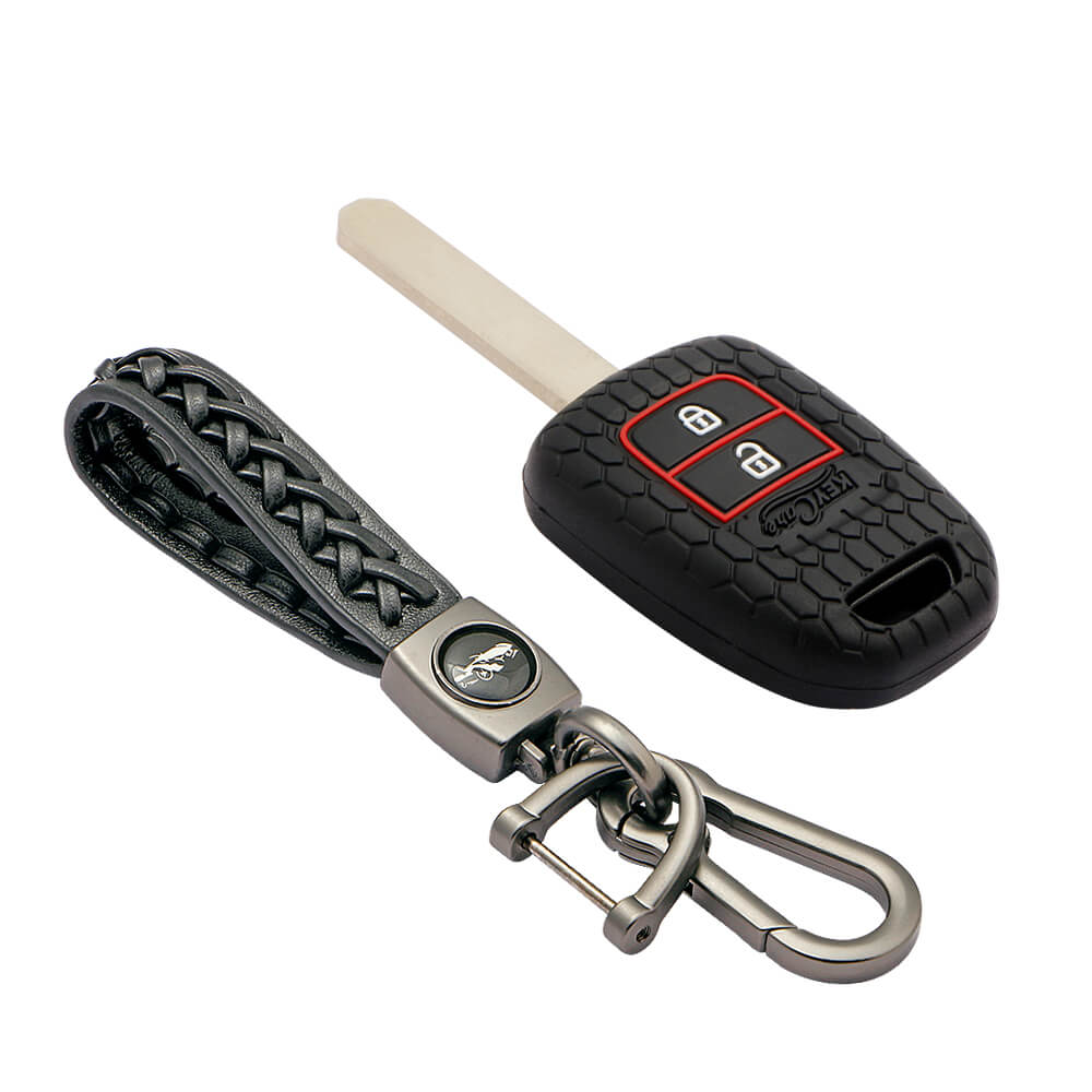 Keycare silicone key cover and keyring fit for : Wr-v, City, Jazz, Amaze 2014+ 2 button remote key (KC-33, Leather Woven Keychain)