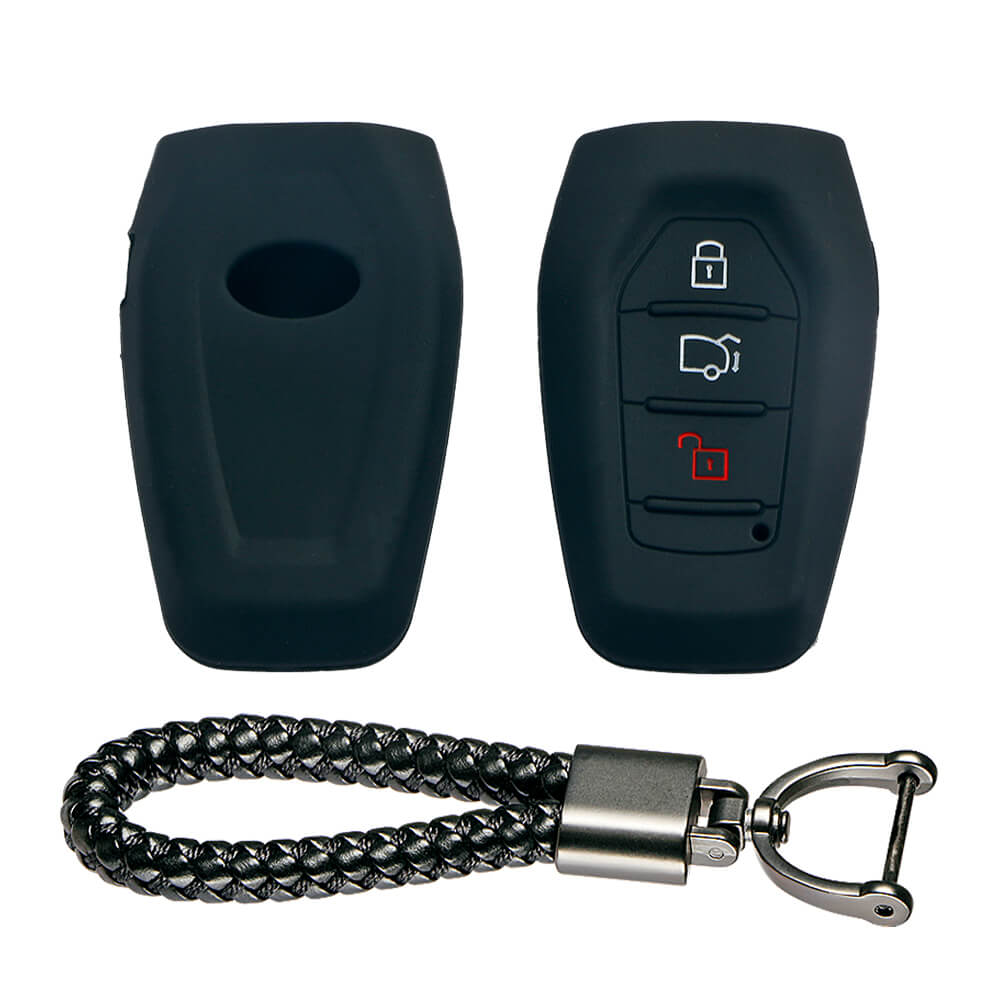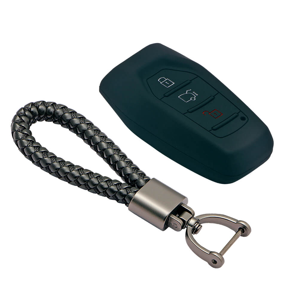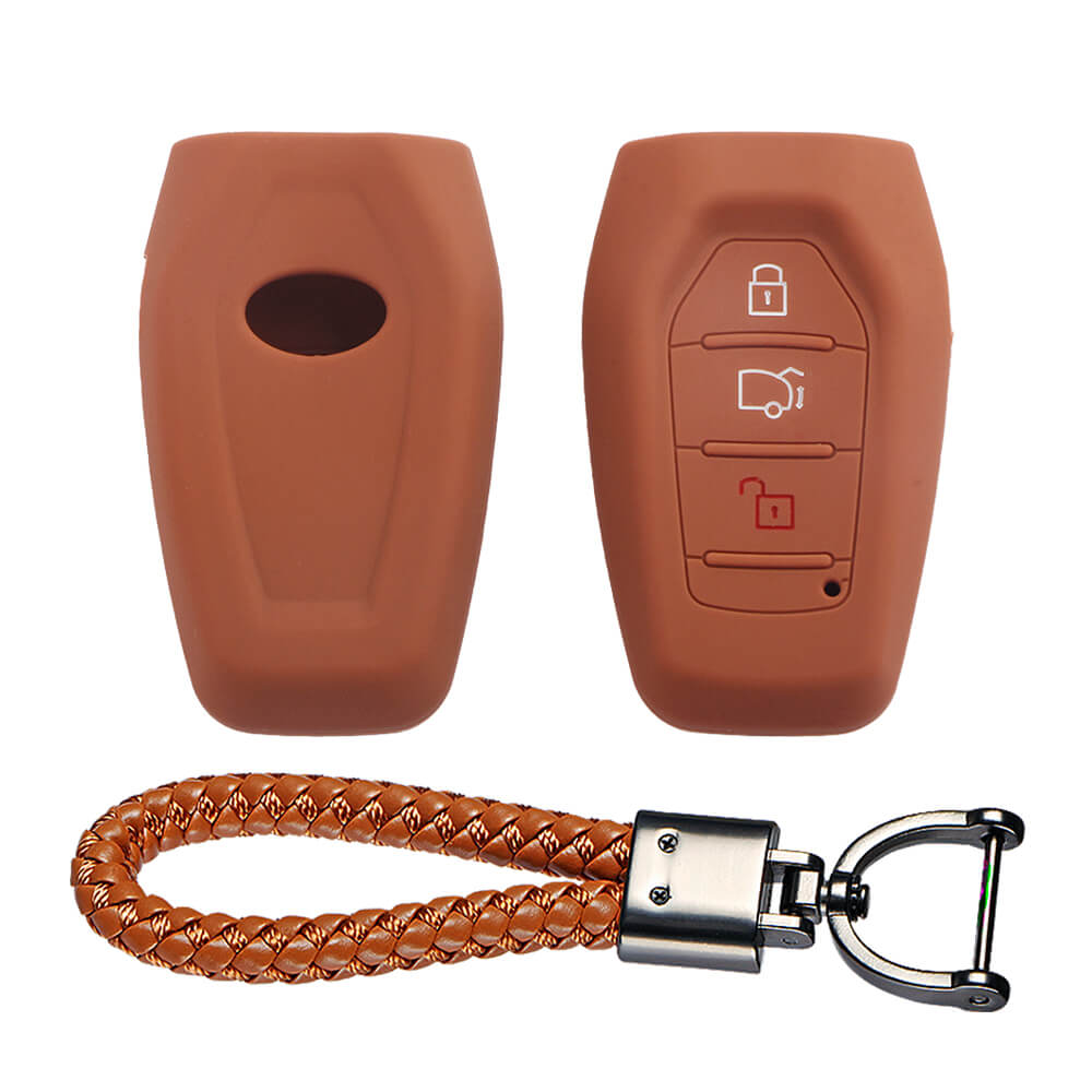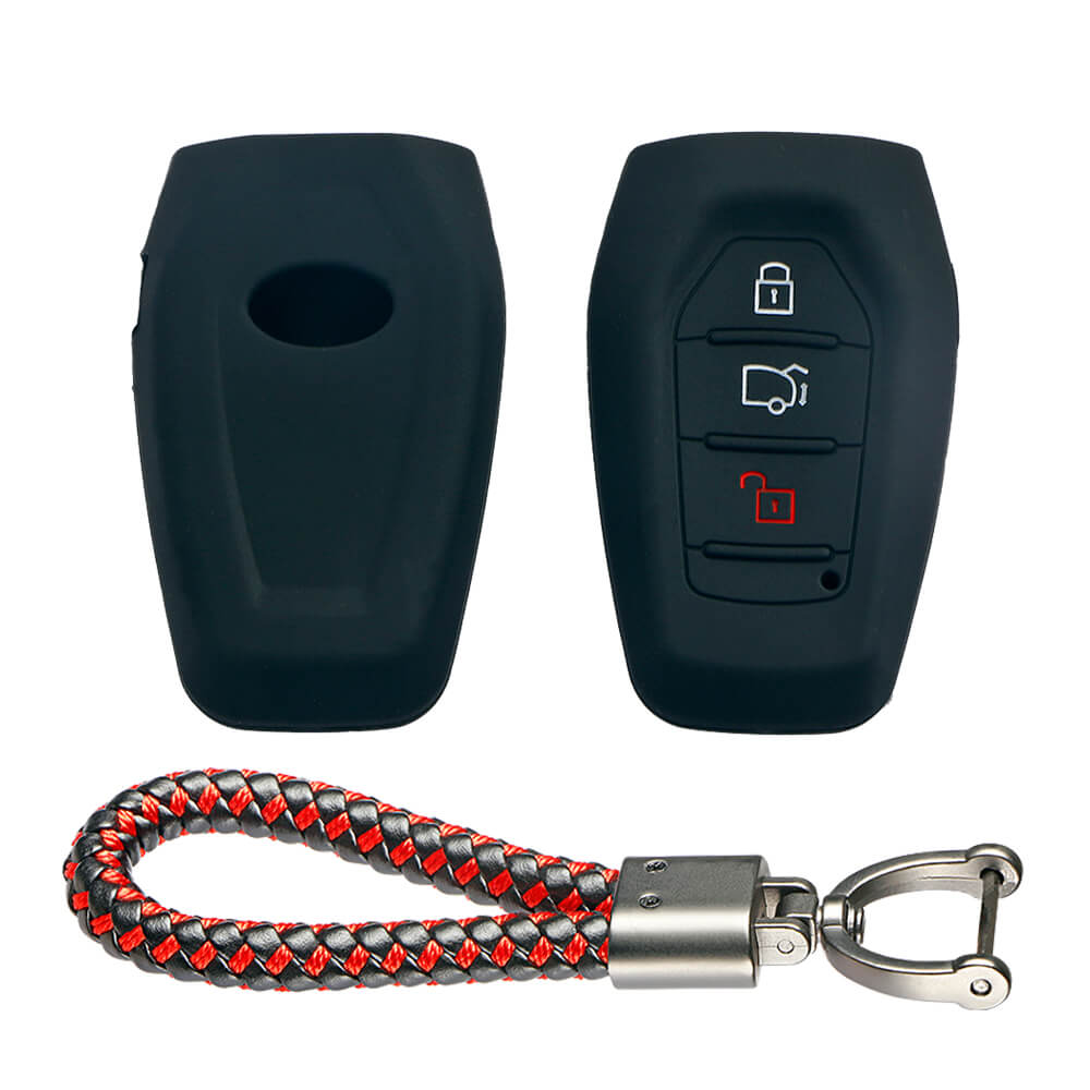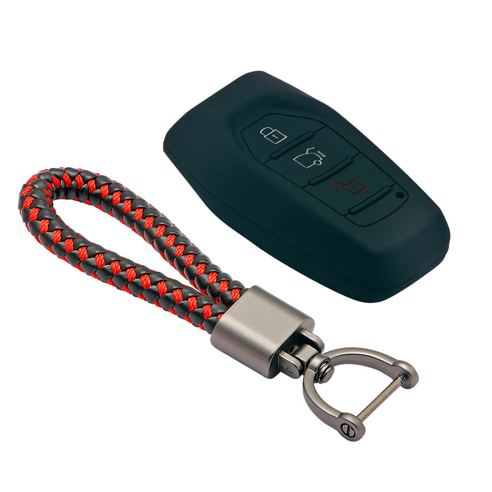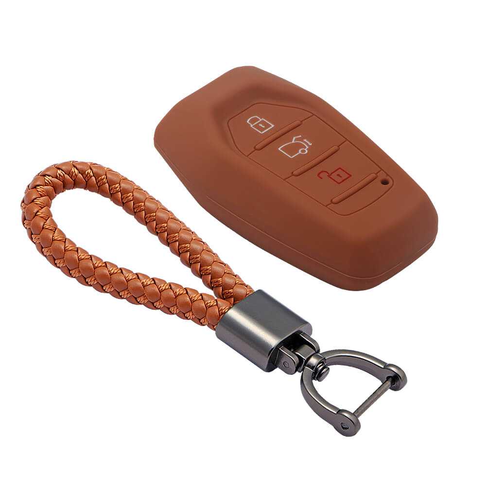 Keycare silicone key cover and keyring fit for : XUV500 smart key (KC-48, Leather Thread Keychain)