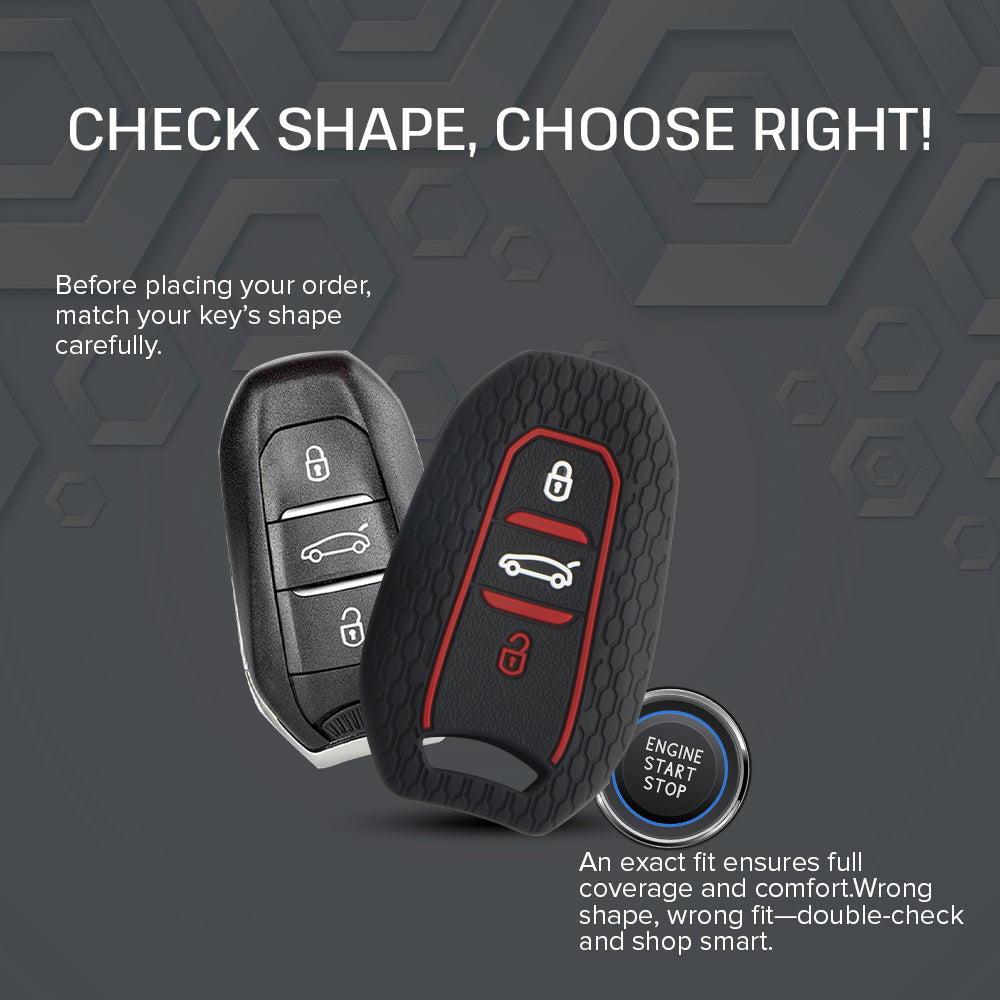 Keycare silicone key cover fit for : Citroen C5 Aircross 3 button smart key (KC-66)