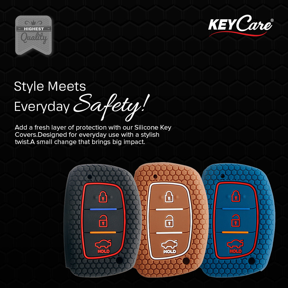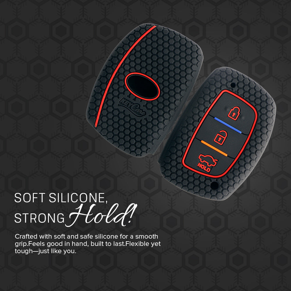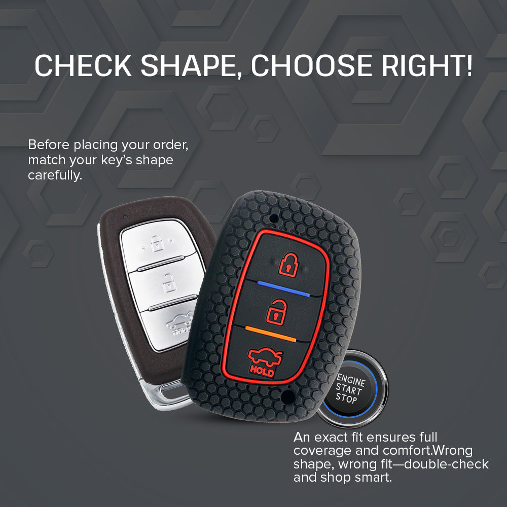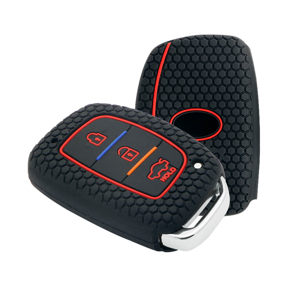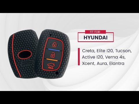 Keycare silicone key cover fit for : Exter, Creta, Elite I20, Active I20, Aura, Verna 4s, Xcent, Tucson, Elantra 3 button smart key (KC-07)