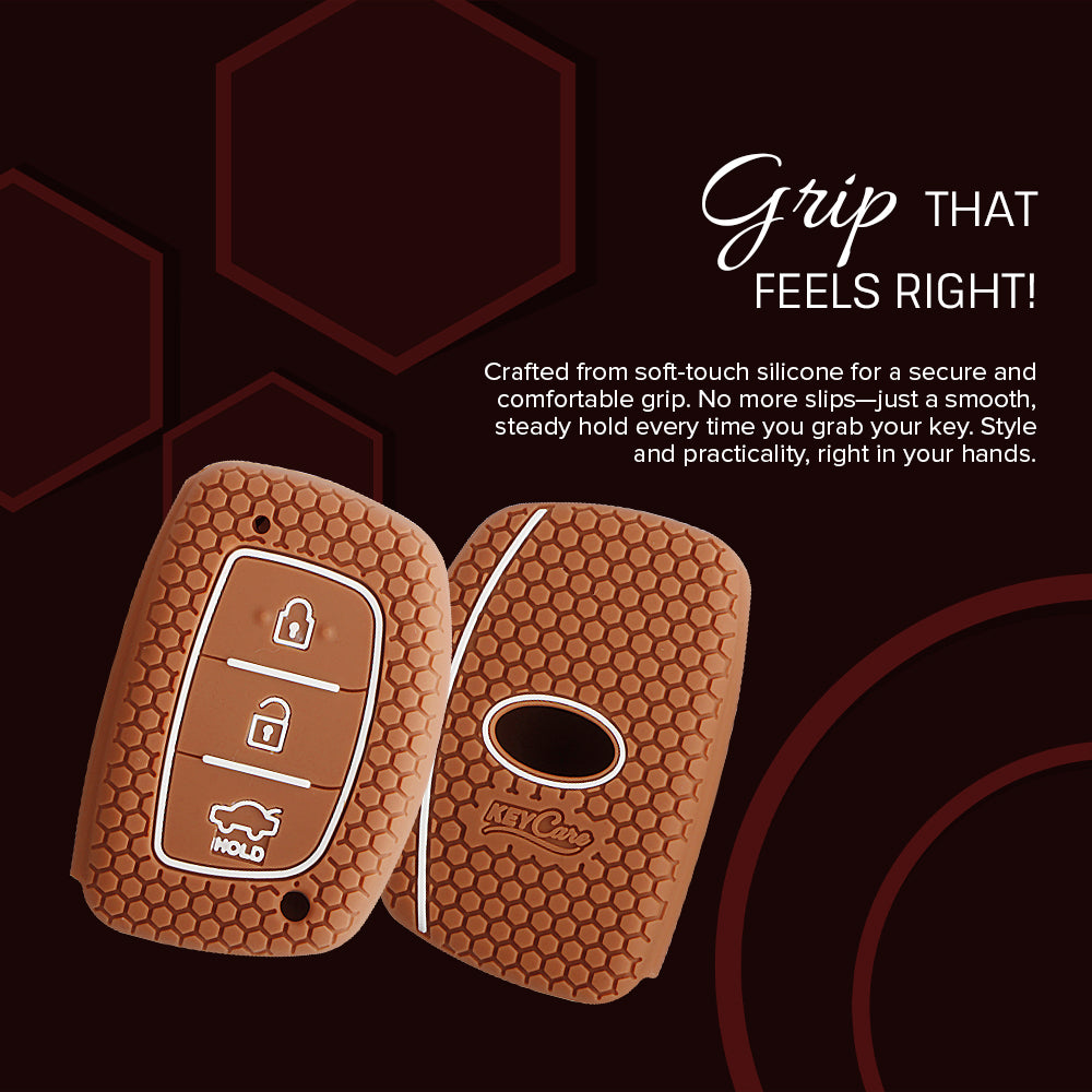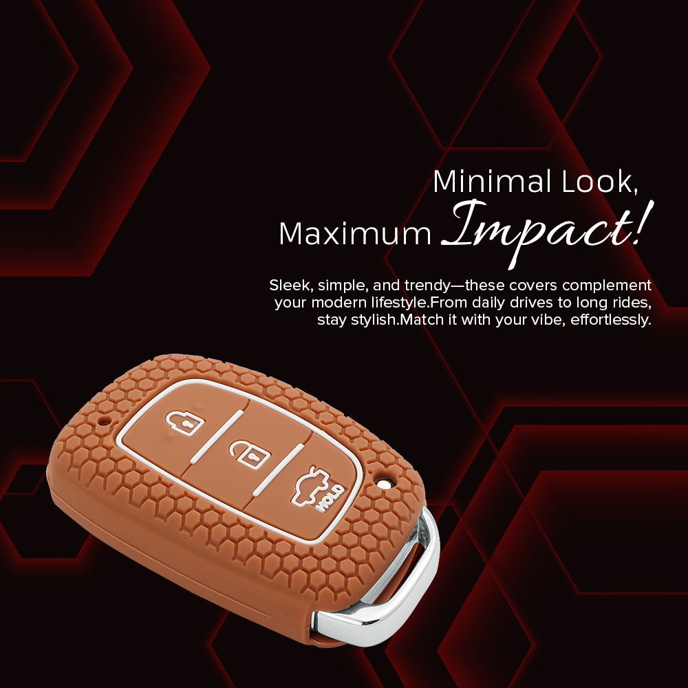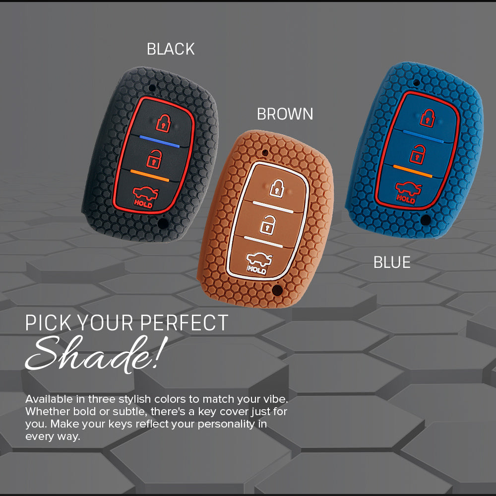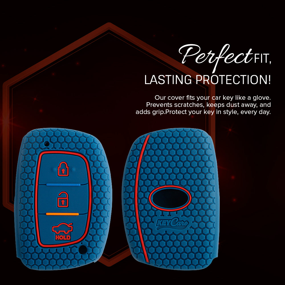 Keycare silicone key cover fit for : Exter, Creta, Elite I20, Active I20, Aura, Verna 4s, Xcent, Tucson, Elantra 3 button smart key (KC-07)