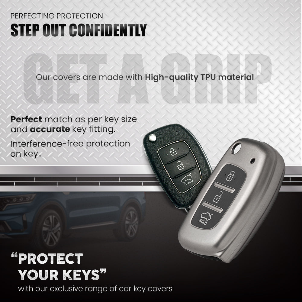 Keyzone® TPU Key Cover Compatible for: i20, Creta, Venue, Alcazar, Grand i10, Tucson, Aura, Xcent, Exter flip Key (GMTP10)