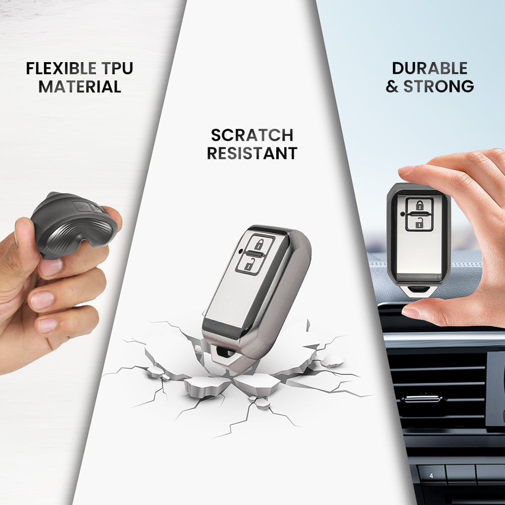 Keyzone® TPU Key Cover Compatible for Victoris, Jimny, Fronx, Baleno, Grand Vitara, Brezza, Swift, Ertiga, XL6, DZire, Ignis 2 Button Smart Key (GMTP05)