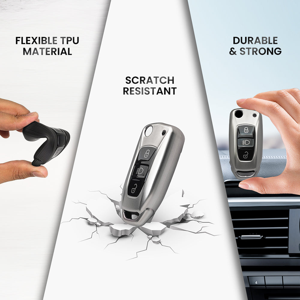 Keyzone® TPU Key Cover for Curvv, Nexon, Harrier, Safari, Altroz, Punch, Tigor, Tiago, Zest, Bolt, Hexa flip key (GMTP29)