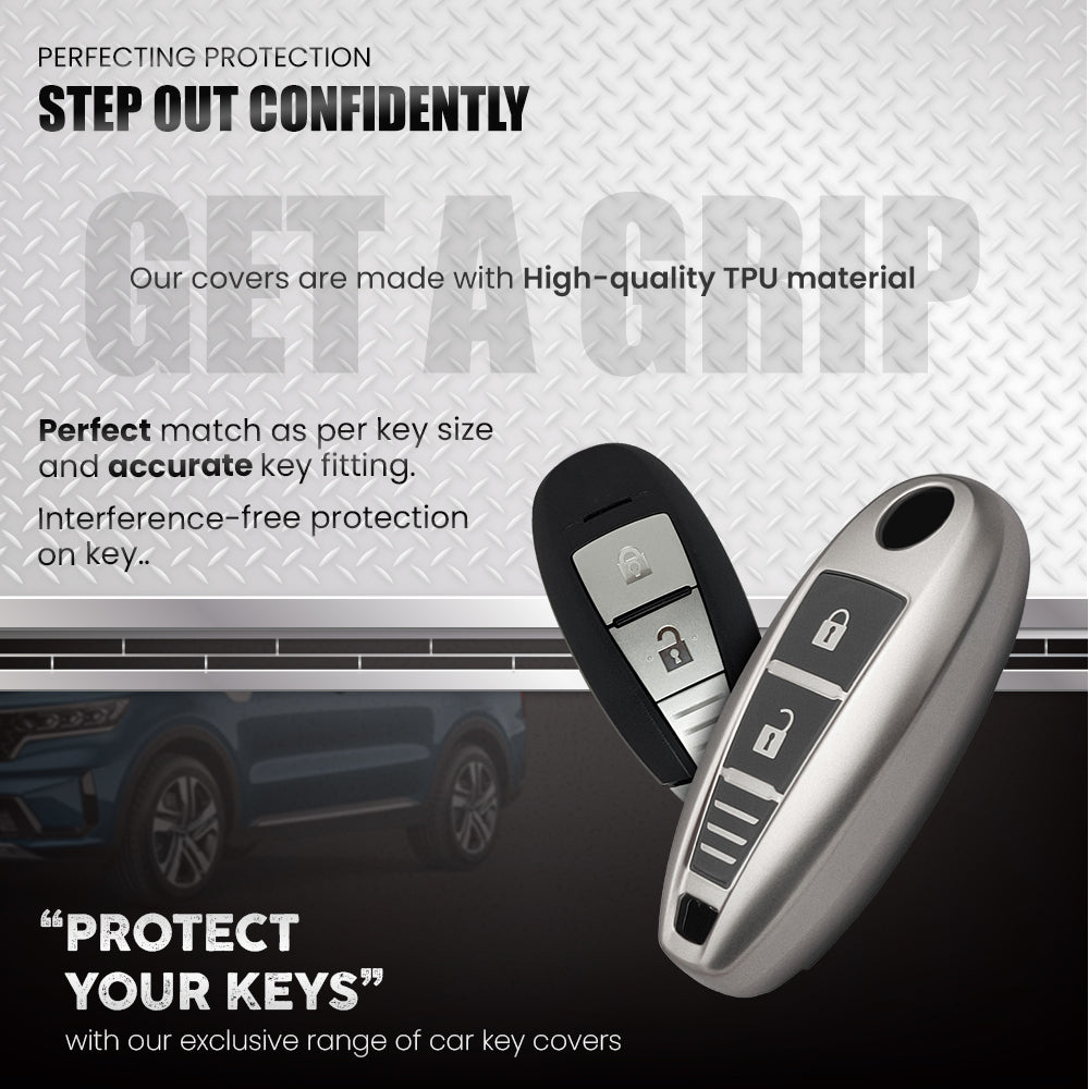 Keyzone® TPU Key Cover & metal alloy key holder for: Ciaz, Ignis, Baleno, SCross, Vitara Brezza, Swift, Ertiga, Urban Cruiser 2b/3b Smart Key (GMTP04, MAH KeyHolder)
