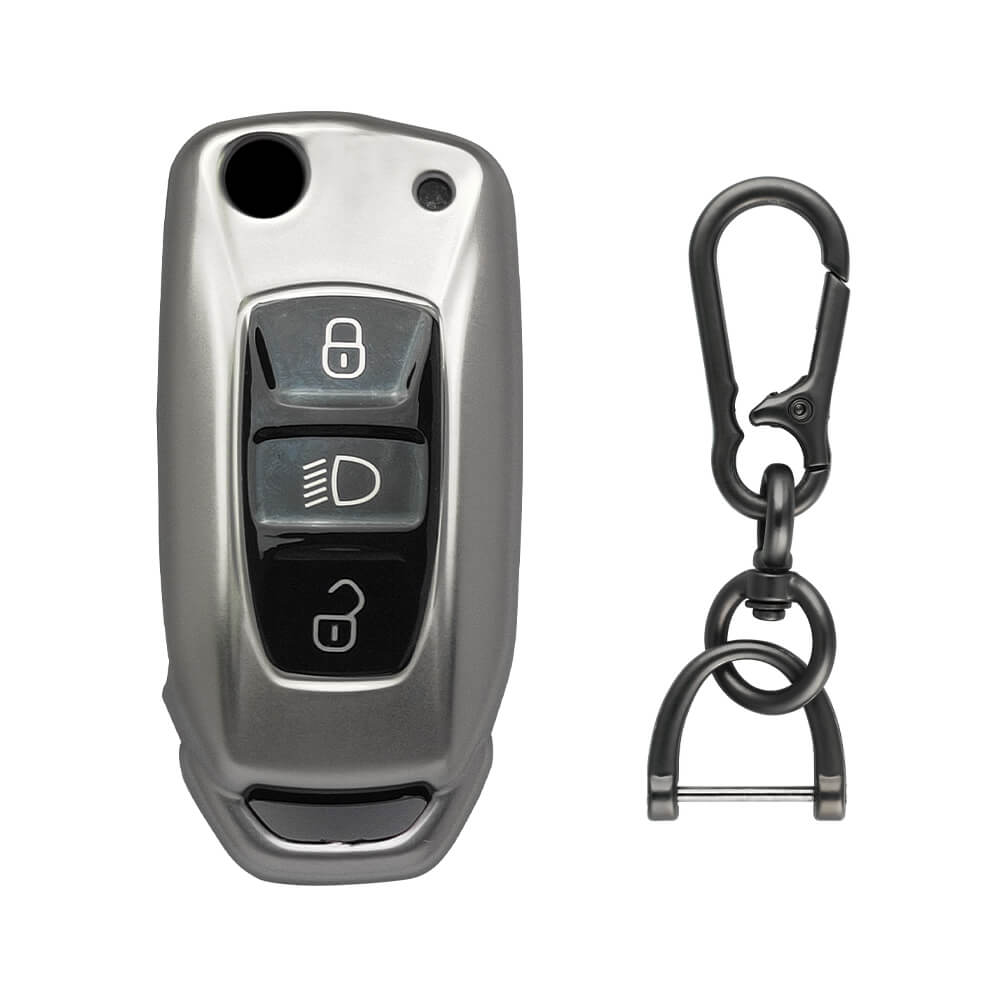 Keyzone® TPU Key Cover & zinc alloy key holder for Curvv, Nexon, Harrier, Safari, Altroz, Punch, Tigor, Tiago, Zest, Bolt, Hexa flip key (GMTP29, Zinc Alloy)