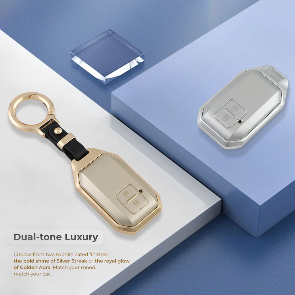 Keyzone aluminium alloy key cover for Victoris, Baleno, Jimny, Grand Vitara, Xl6, Ignis, Swift, Ertiga, Fronx, Brezza, Dzire, Glanza, Urban Cruiser Hyryder, Taisor 2b smart key (ALM05)