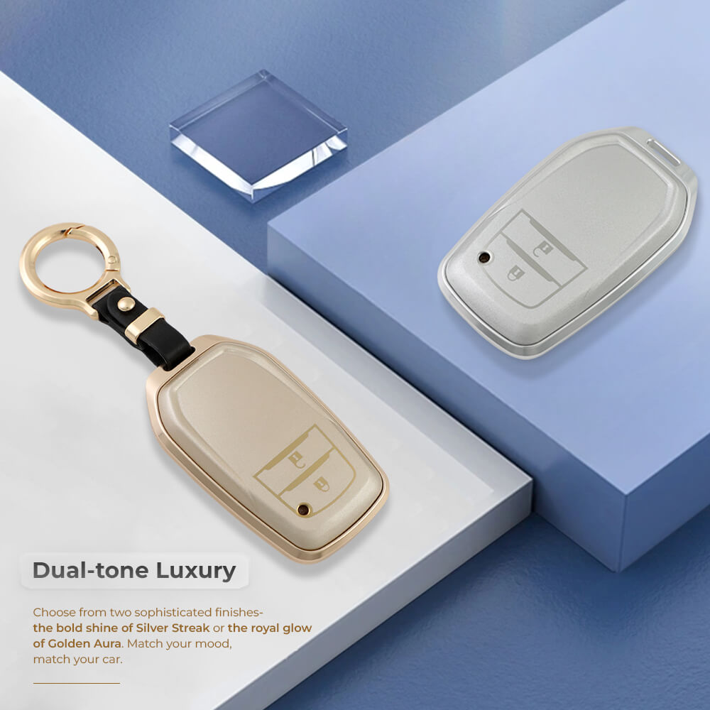 Keyzone aluminium alloy key cover for Innova Crysta, HyCross, Hilux 2 button smart key (ALM18_2b)