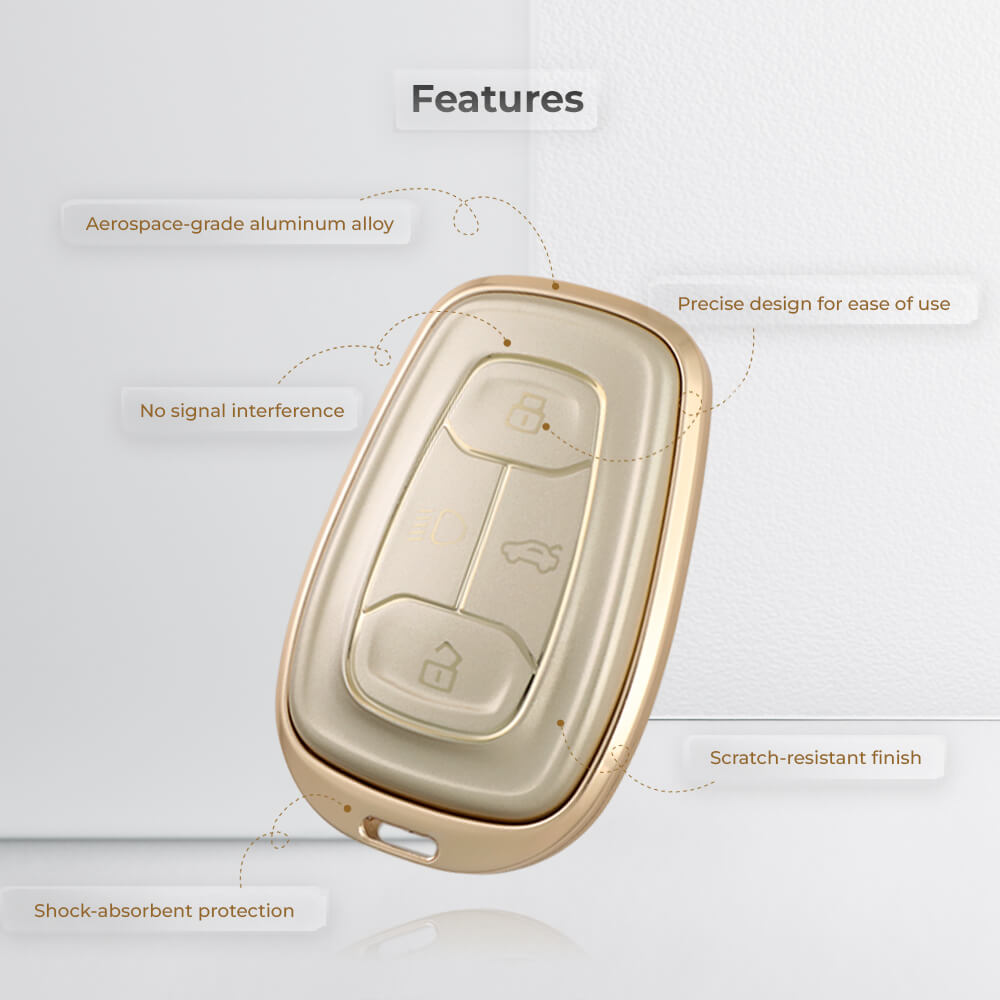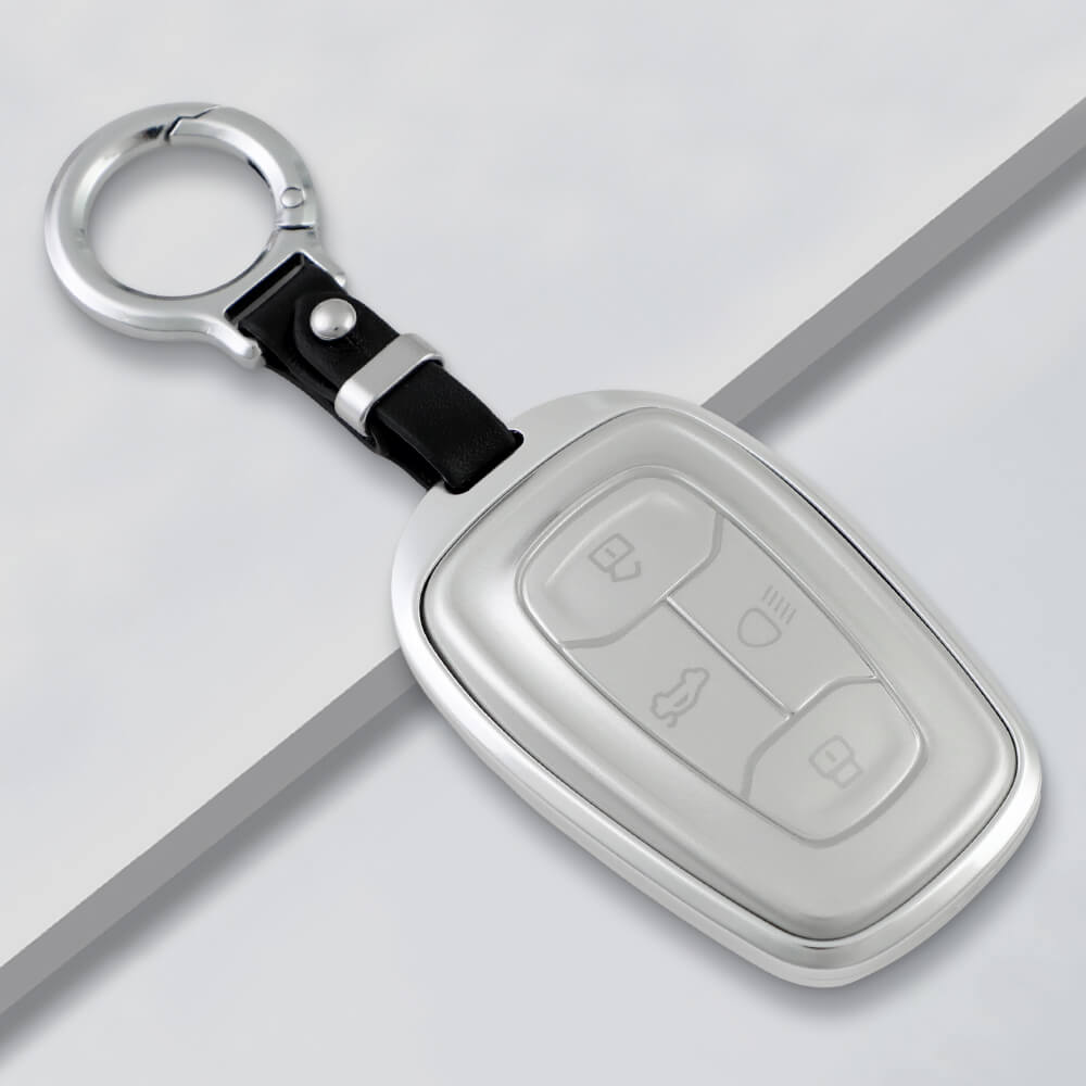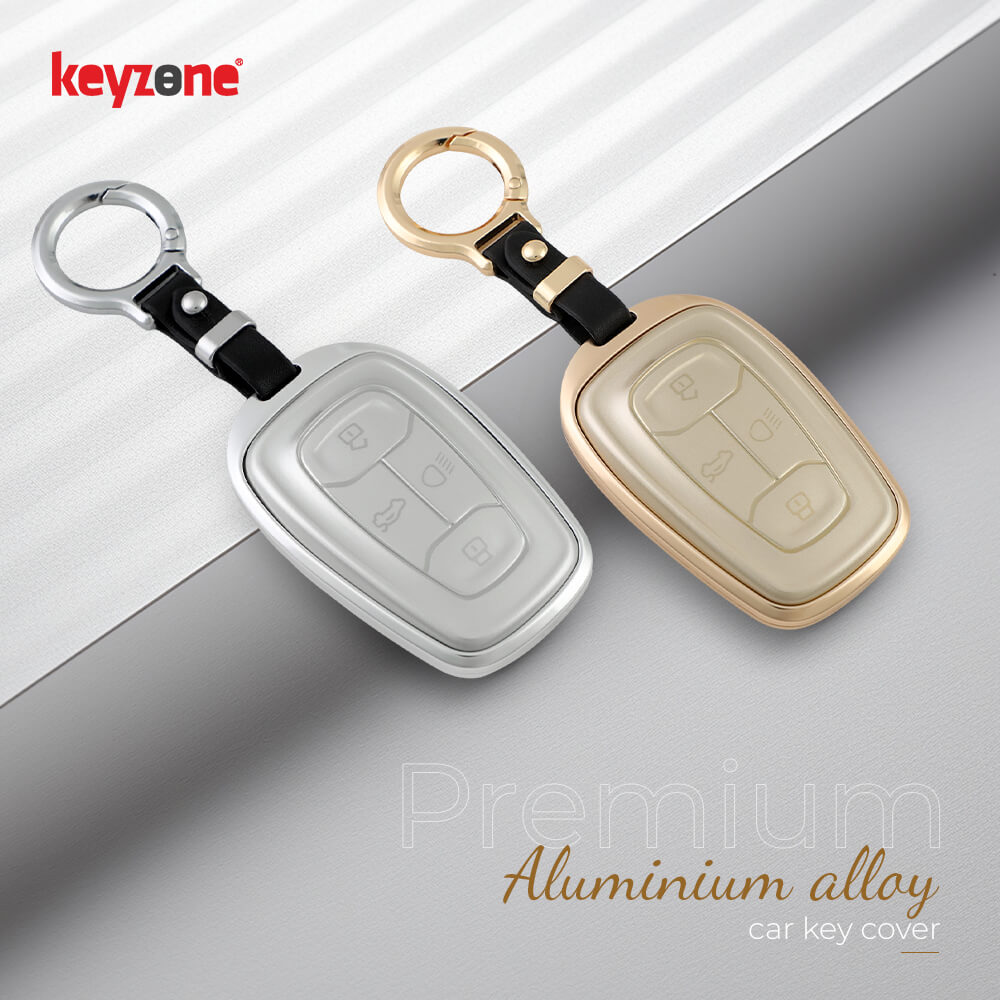 Keyzone aluminium alloy key cover for Nexon, Harrier, Safari, Altroz, Punch, Tigor 4 button smart key (ALM08)