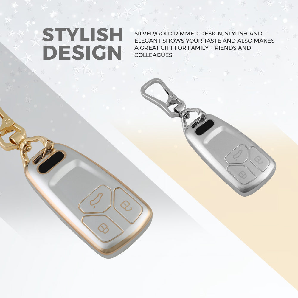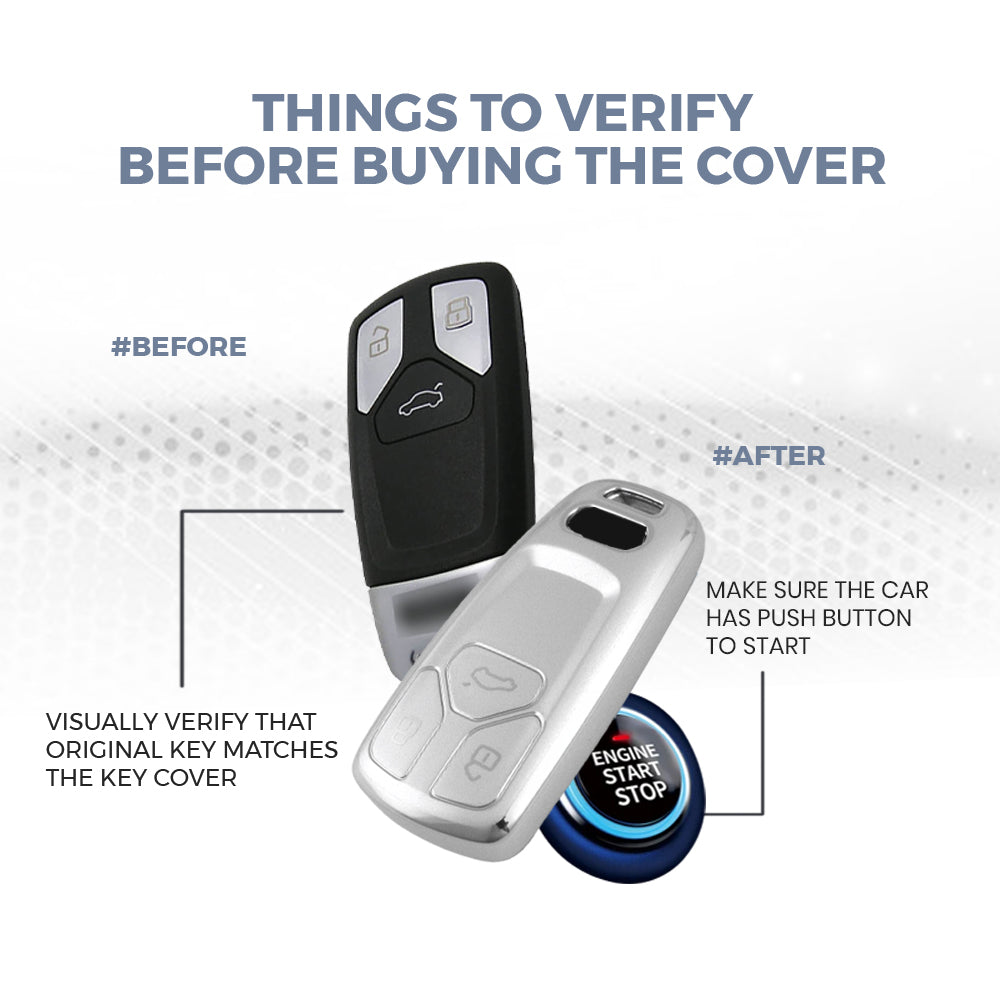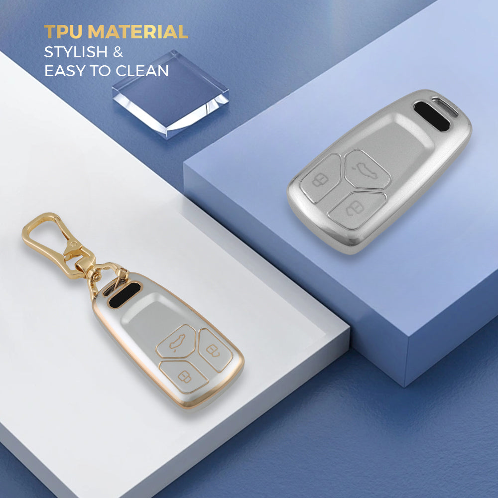 Keyzone DTPU key cover & alloy keychain for Audi Q5, A5, A8, Q7, A4, A6 3 button smart key (DTP47, DAlloy)