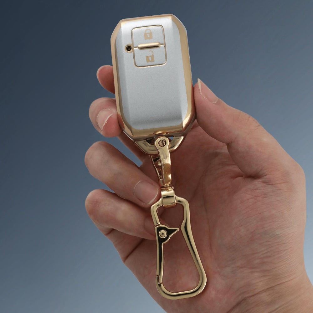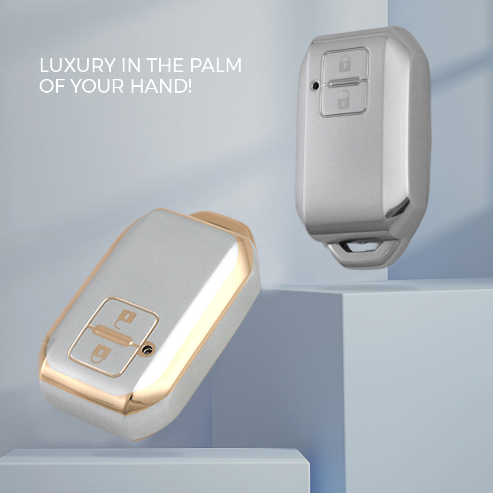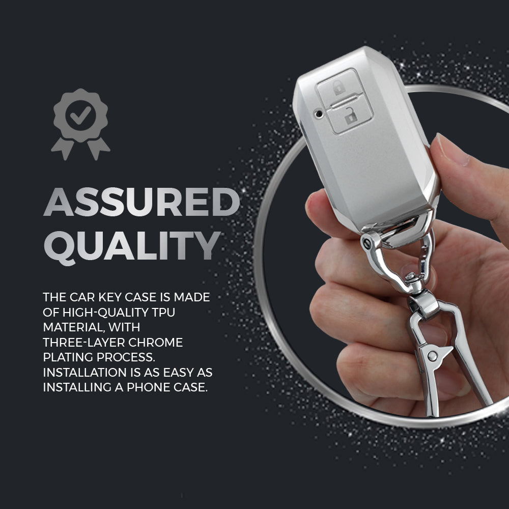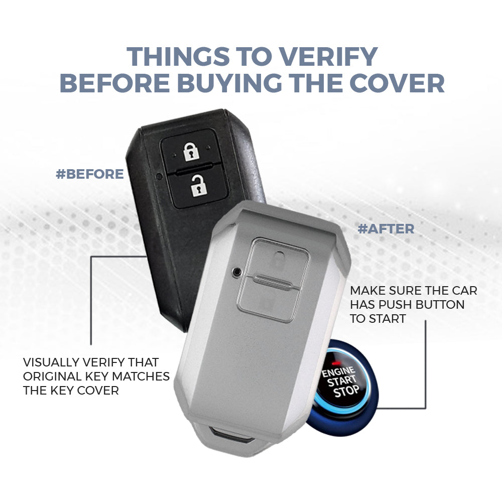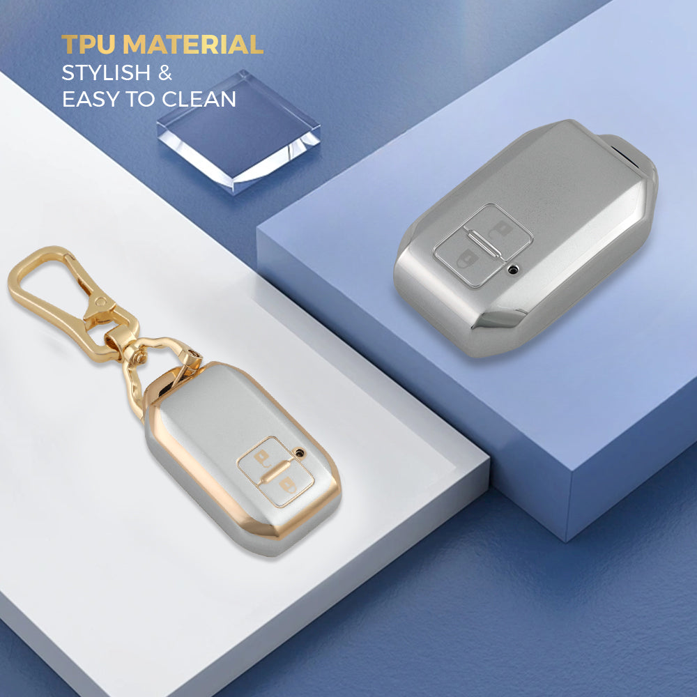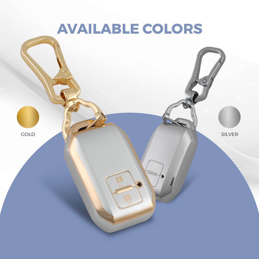 Keyzone DTPU Key Cover & alloy keychain for Victoris, Baleno, Swift, Ertiga, Grand Vitara, XL6, Brezza, Fronx, Dzire, Glanza, Urban Cruiser Hyryder 2b Smart Key (DTP05, DAlloy)
