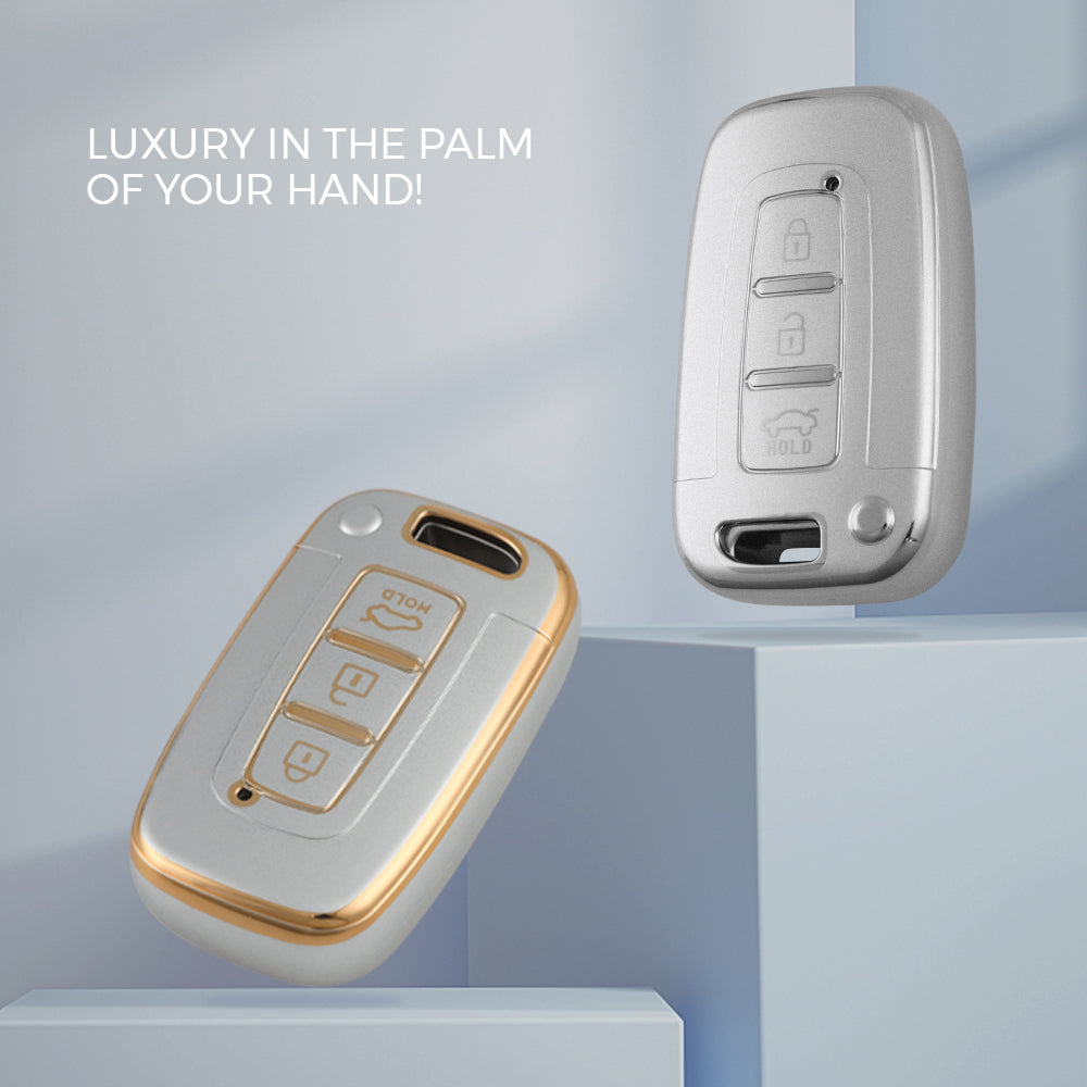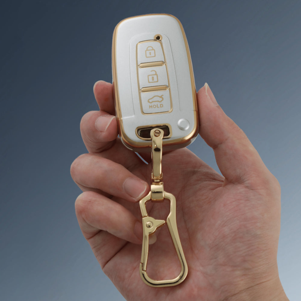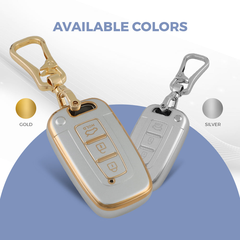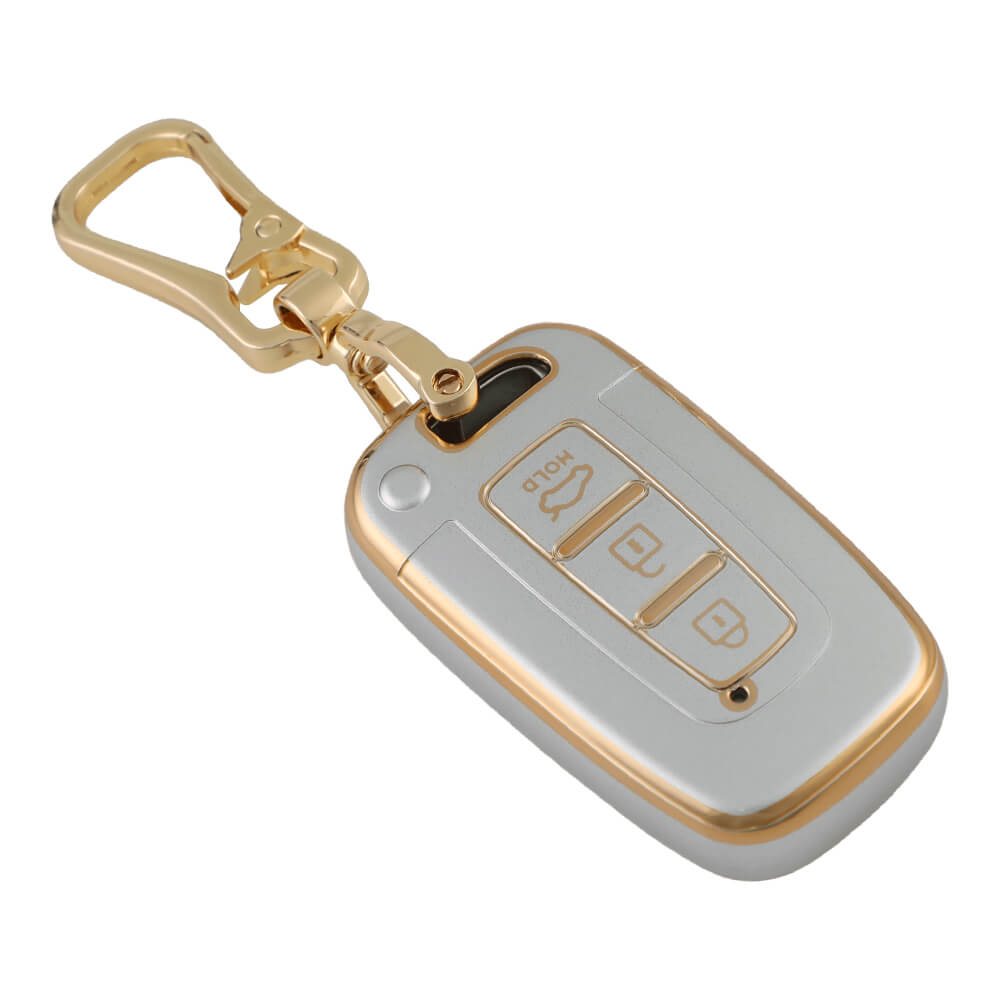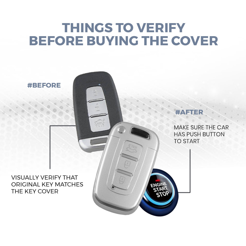 Keyzone DTPU key cover & alloy keychain for i20, Verna, Elantra old 3 button smart key (DTP76, DAlloy)