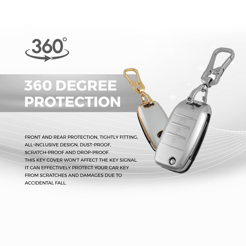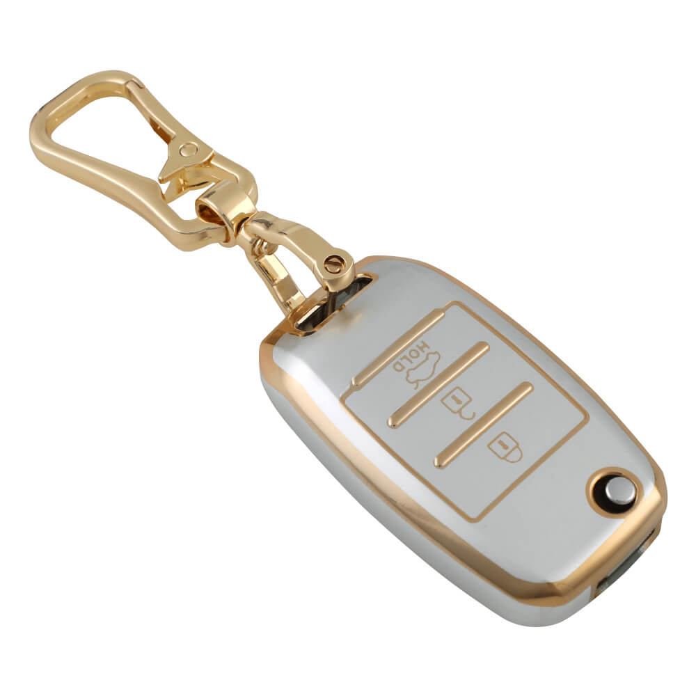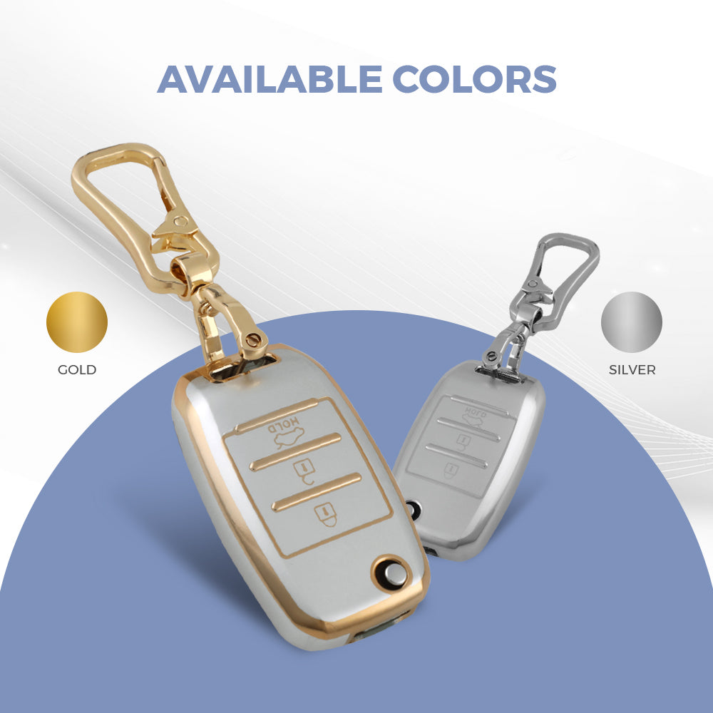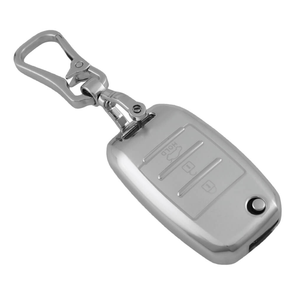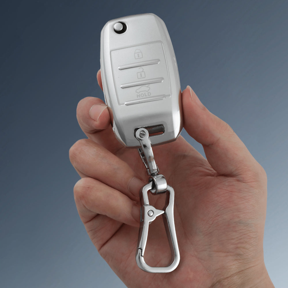 Keyzone DTPU key cover & alloy keychain for Seltos, Sonet, Carens 3 Button Flip key (DTP35, DAlloy)